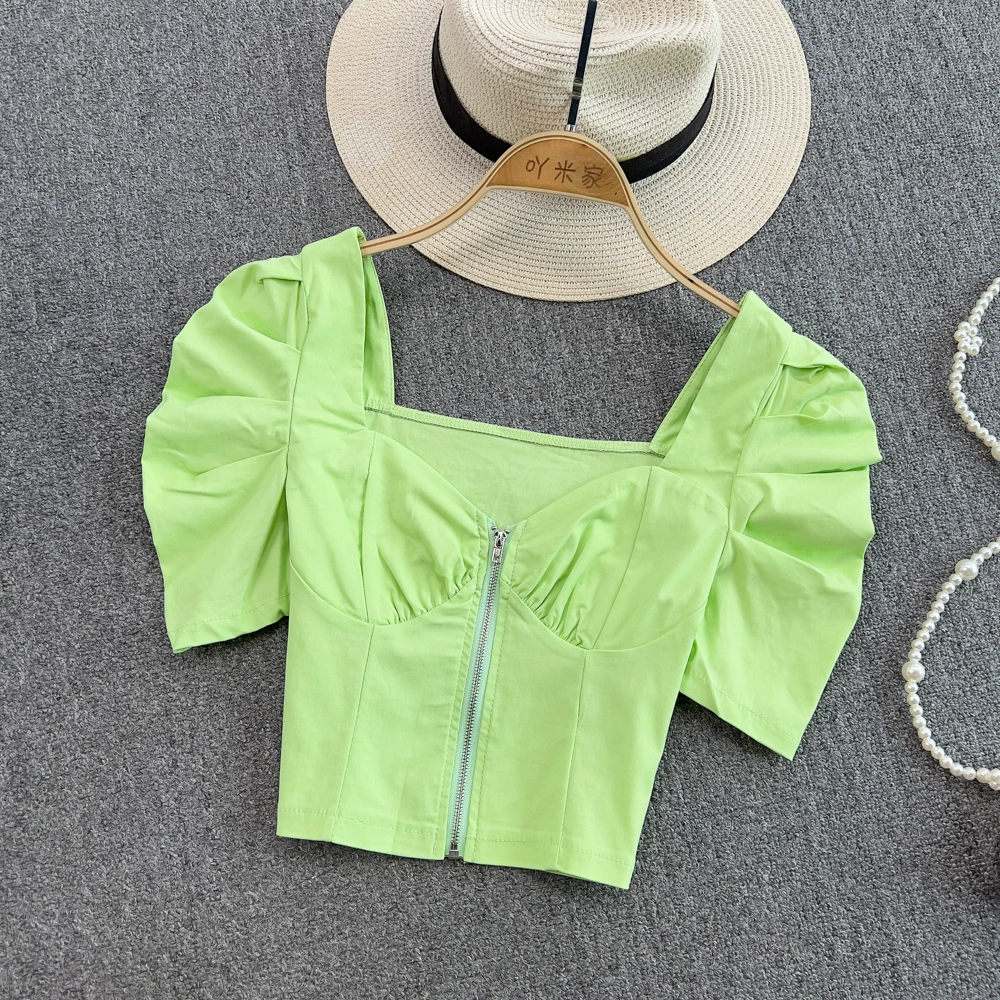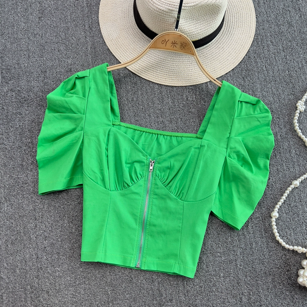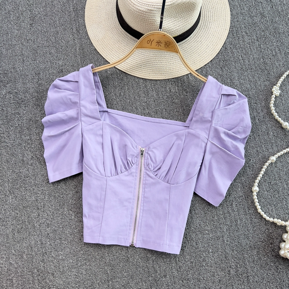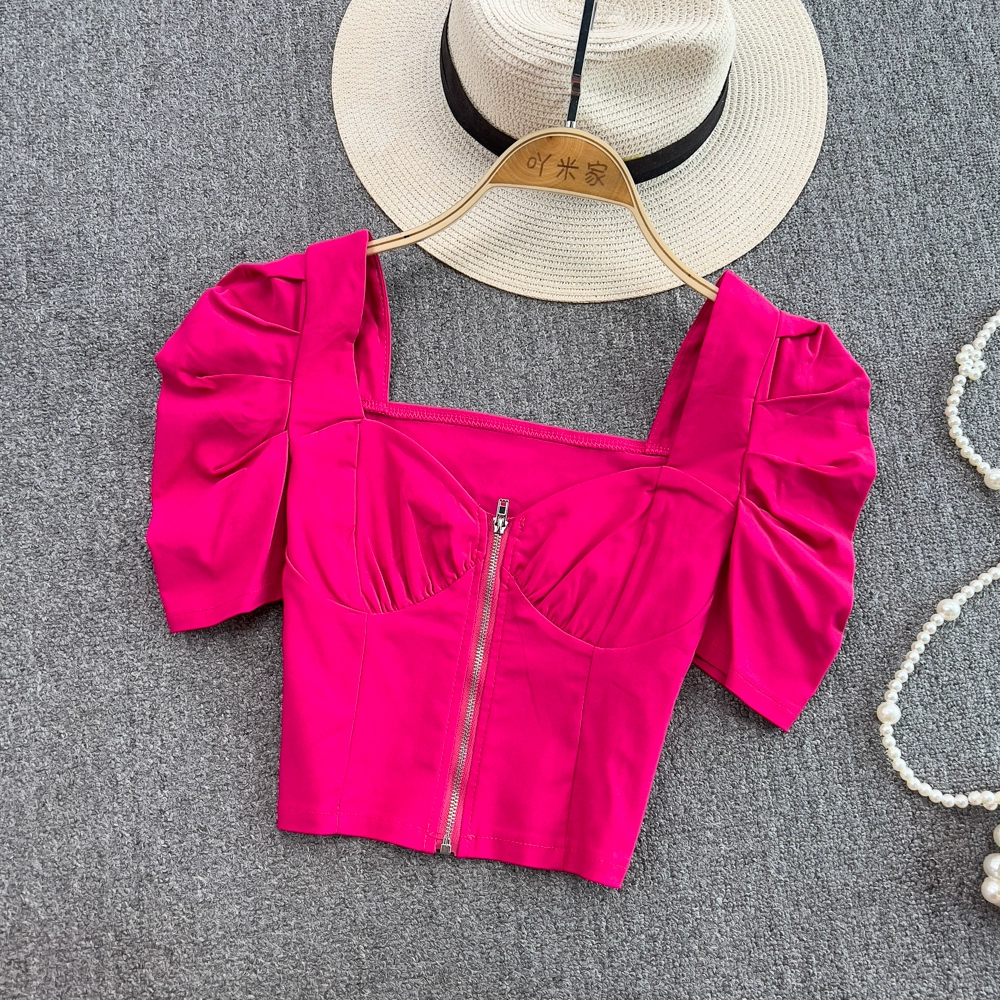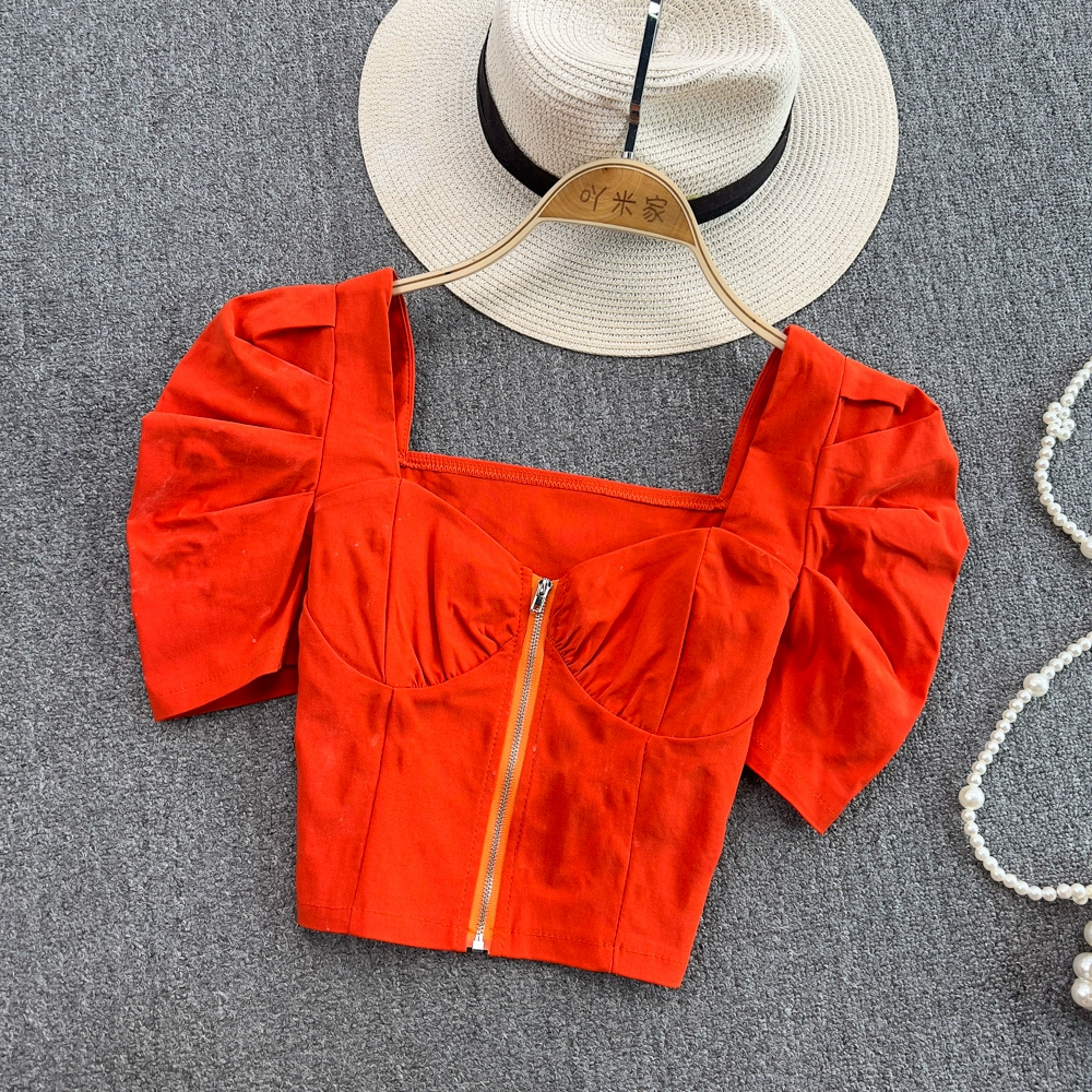 | nameOriginal | French square neck puff sleeve zipper shirt slim fit pullover |