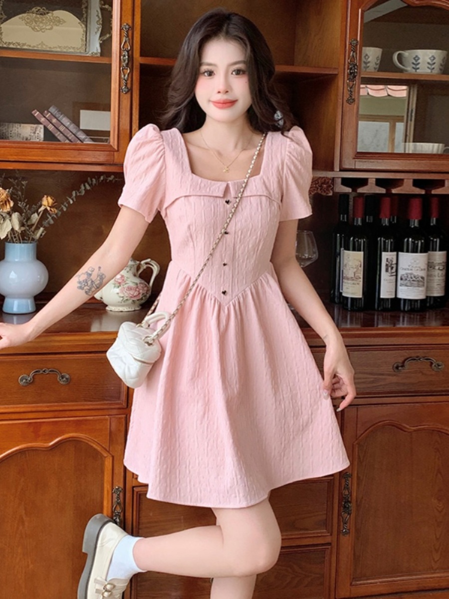| nameOriginal | French square neck slimming dress for fat girls with pear-shaped figures |