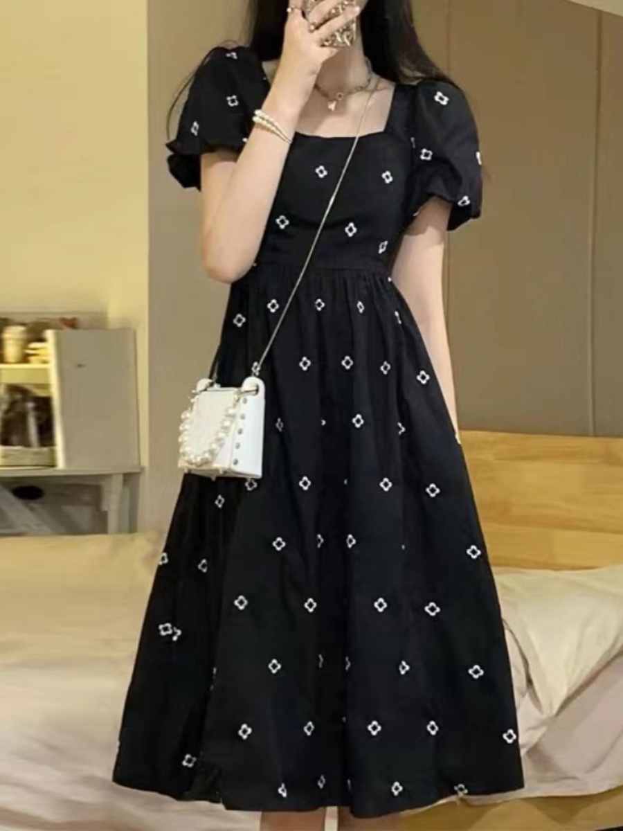 | nameOriginal | French square neck summer fat girl short-sleeved floral dress |