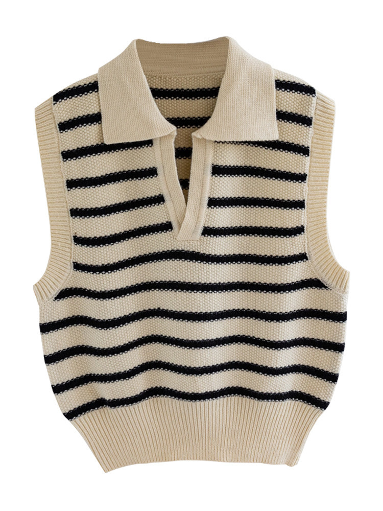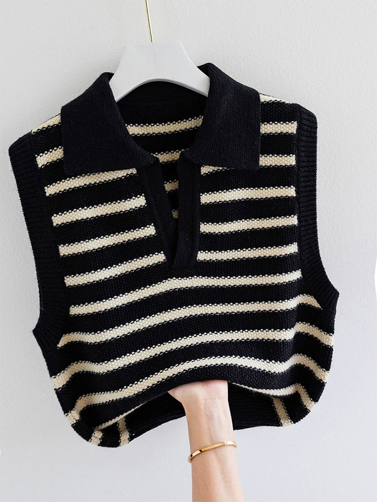 | nameOriginal | French Striped Knitted Vest Women's Spring and Autumn Short Sleeveless Waistel Sweater Vest Stacked Top |