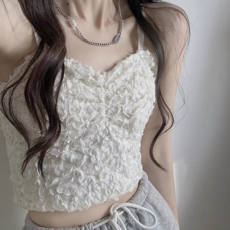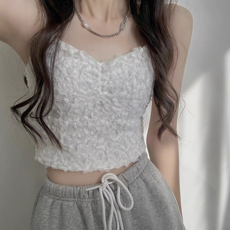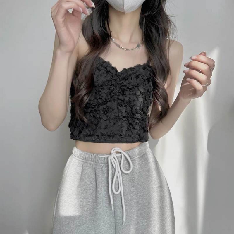 | nameOriginal | French Style Black Lace Petal Sling with Chest Pad Vest Women's Summer Sexy Hot Girl Short Outer Wear Inner Top |