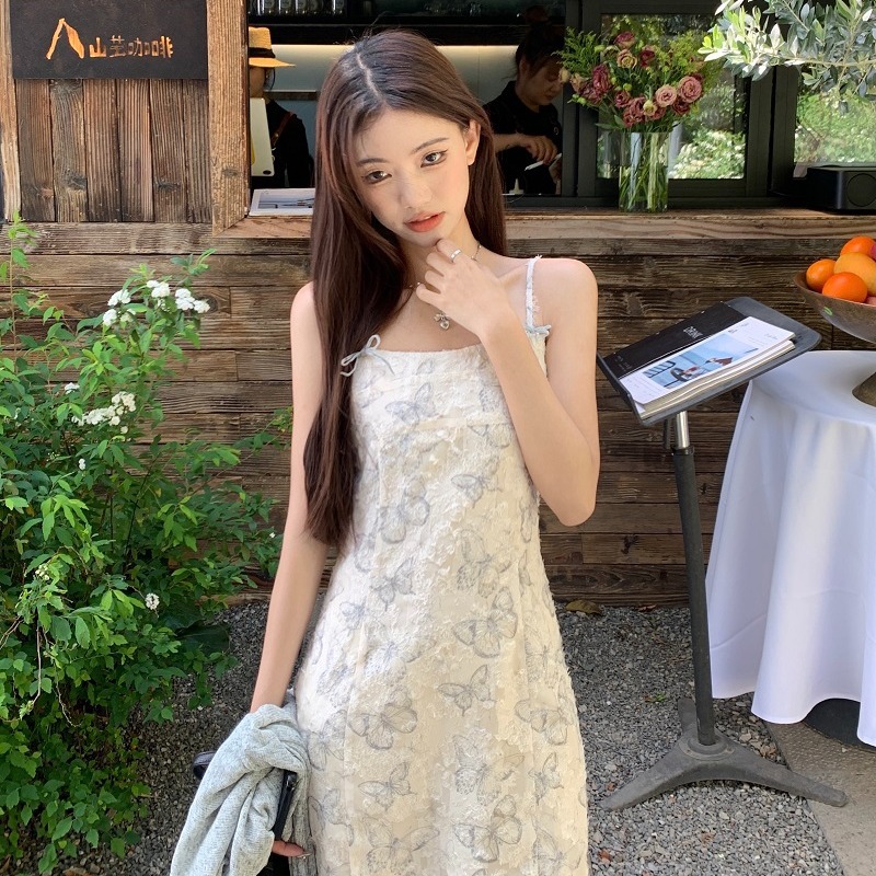 French Style Butterfly Burned Flower Sling dress Women's Summer Elegant Slimming Short Skirt Sunscreen Short Cardigan Two-piece Set