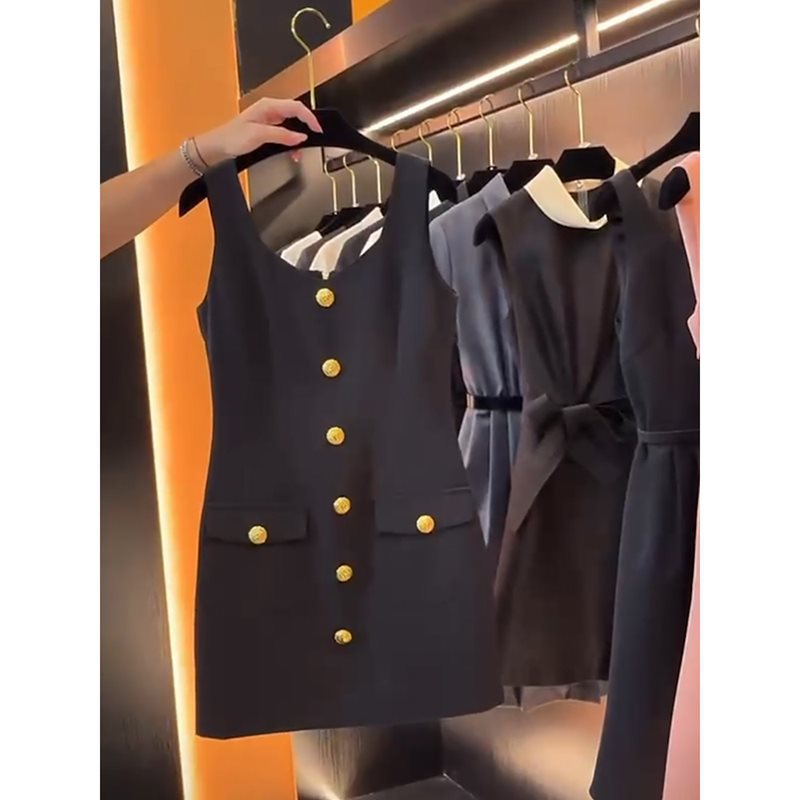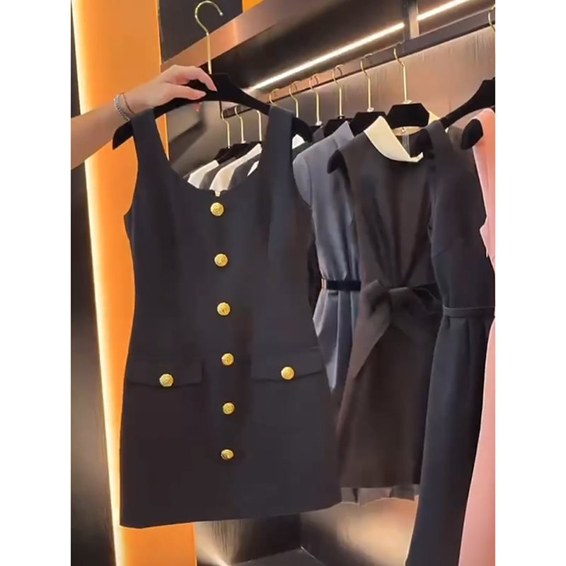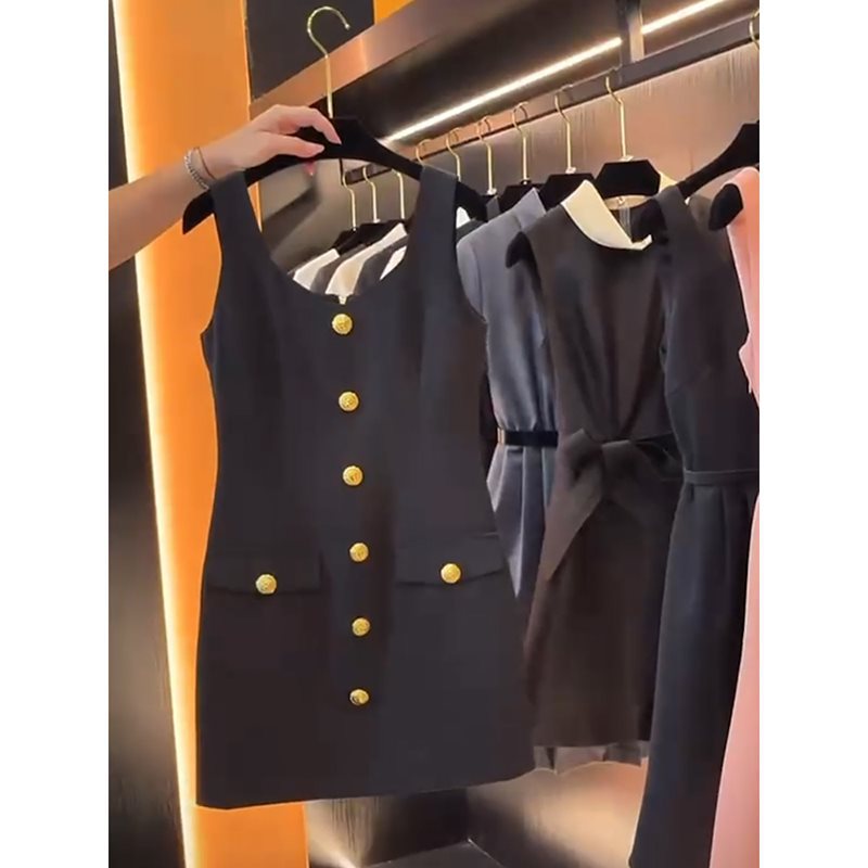 | nameOriginal | French Style Chanel Style Black Sleeveless Vest Dress Women's Summer New Design Sense Tight Waist Slim A- line Skirt |