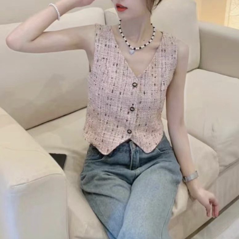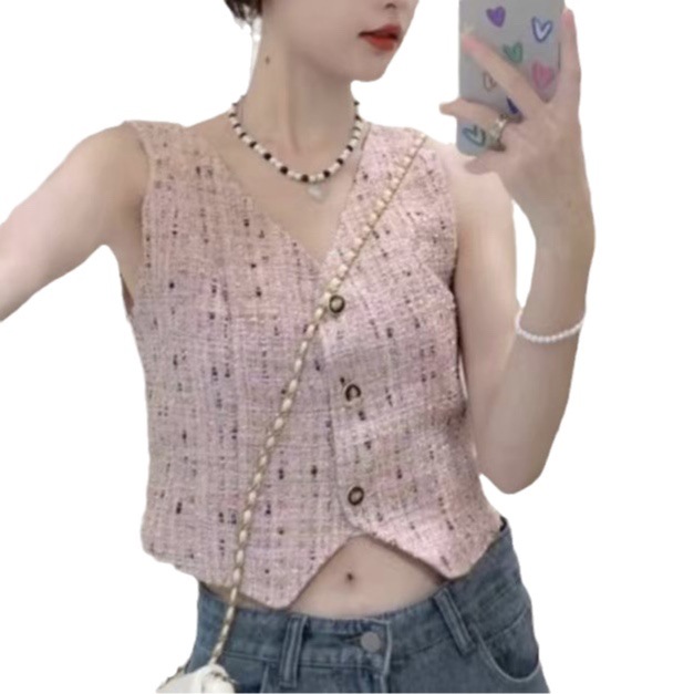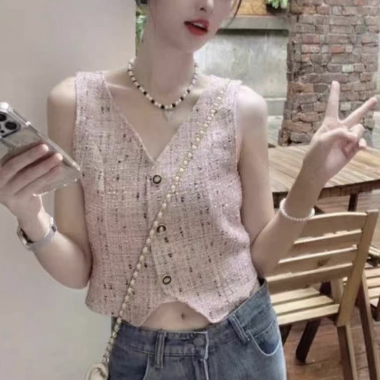 | nameOriginal | French Style Chanel V-neck Sleeveless Vest Cardigan Vest Women's Summer Design Sense Slim-fit Slim-fit Outer Wear Short Top |
