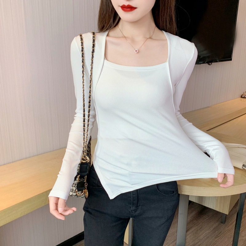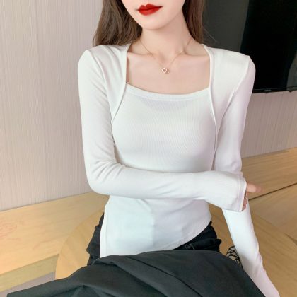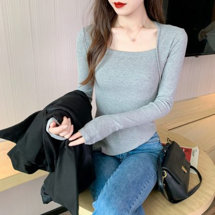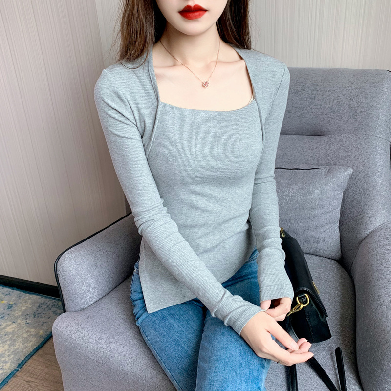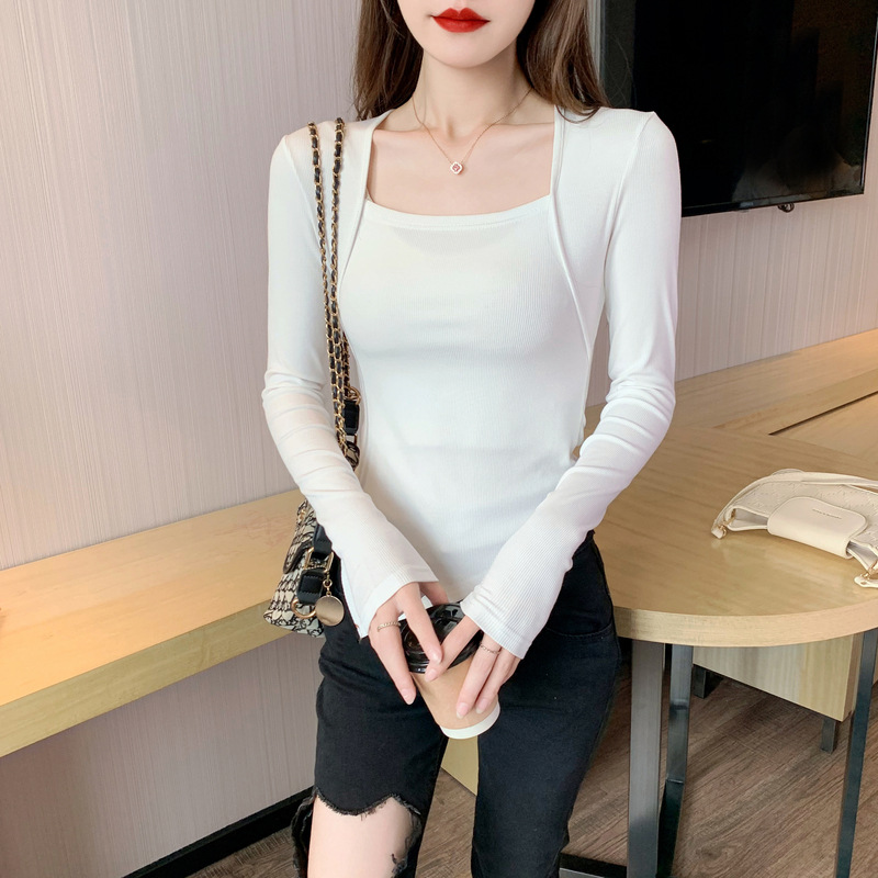 | nameOriginal | French style collarbone square collar top women's design long sleeve shirt slim fit spring fake two-piece undershirt |