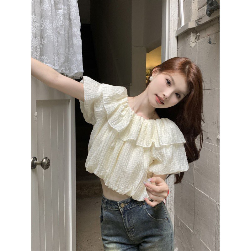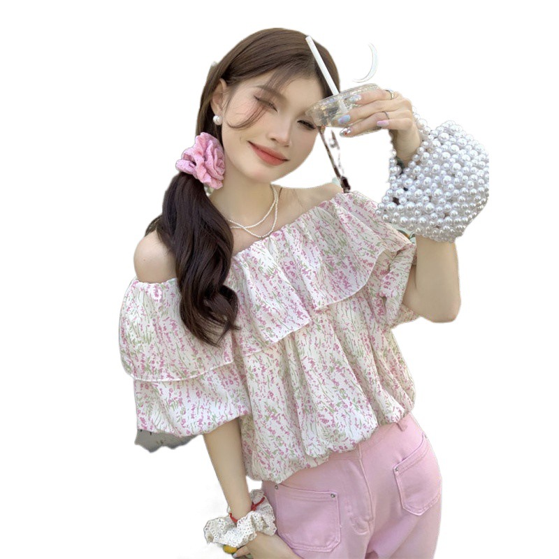 | nameOriginal | French Style Design Niche Floral Off-Shoulder Top Women's Summer Wear Puff Sleeve Western Style Short Chiffon Shirt |