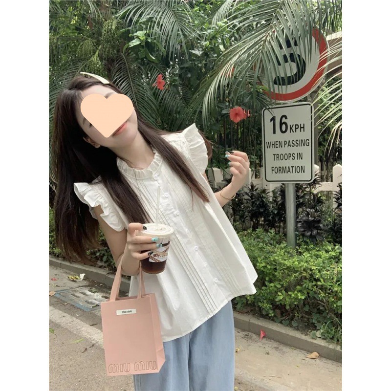 | nameOriginal | French Style Design Sweet Small Flying Sleeve Blue Plaid Shirt Women's Summer Retro Chic Ruffled Sleeveless Top |