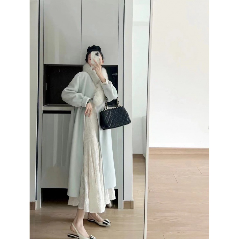 | nameOriginal | French-style elegant high-end fox fur collar cashmere woolen coat winter goddess style V-neck lace-up mid-length coat |