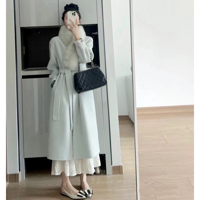 | nameOriginal | French-style elegant high-end fox fur collar cashmere woolen coat winter goddess style V-neck lace-up mid-length coat |