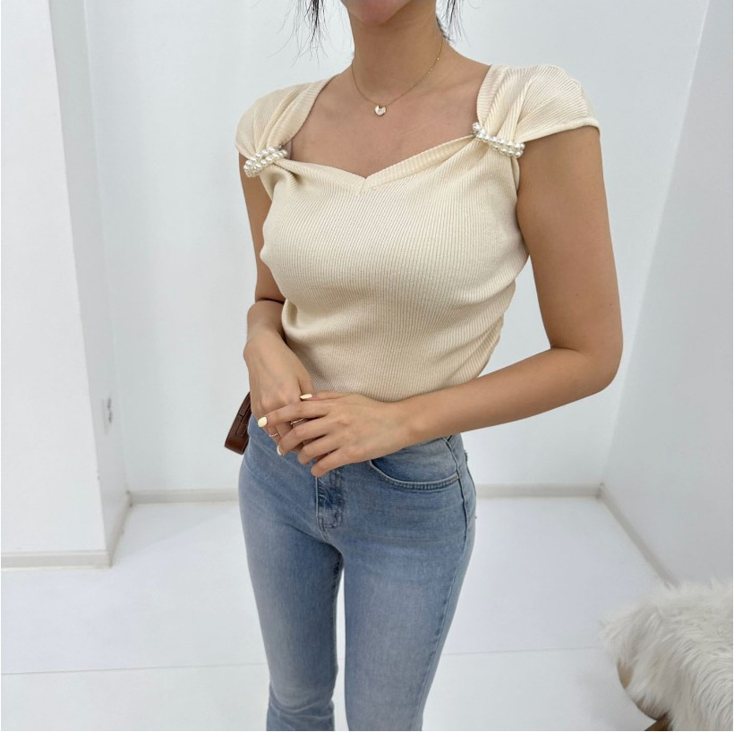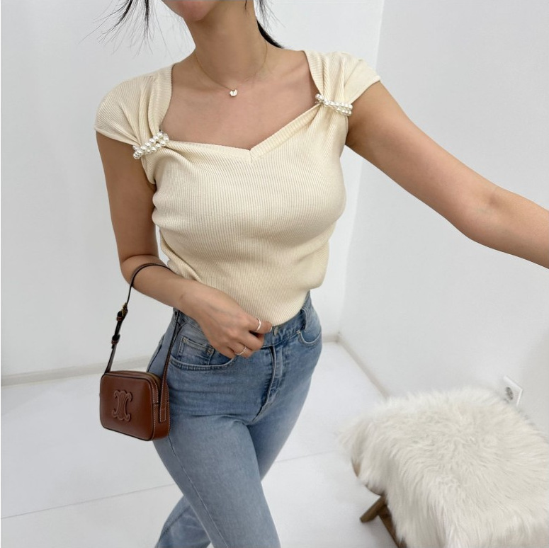 | nameOriginal | French Style Elegant Square Collar Short-Sleeved Women's 2024 Summer Niche Design Pleated Slim Look Short All-Match Top |