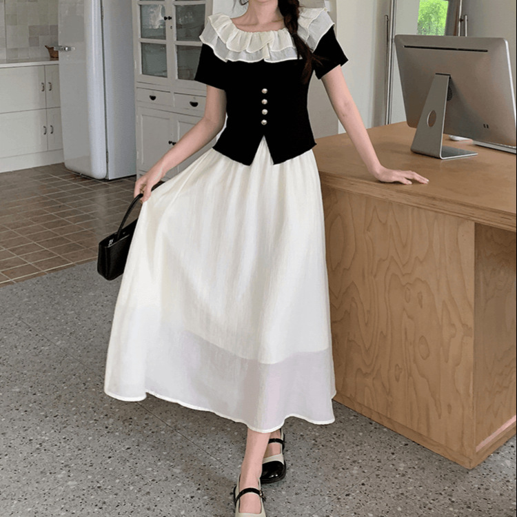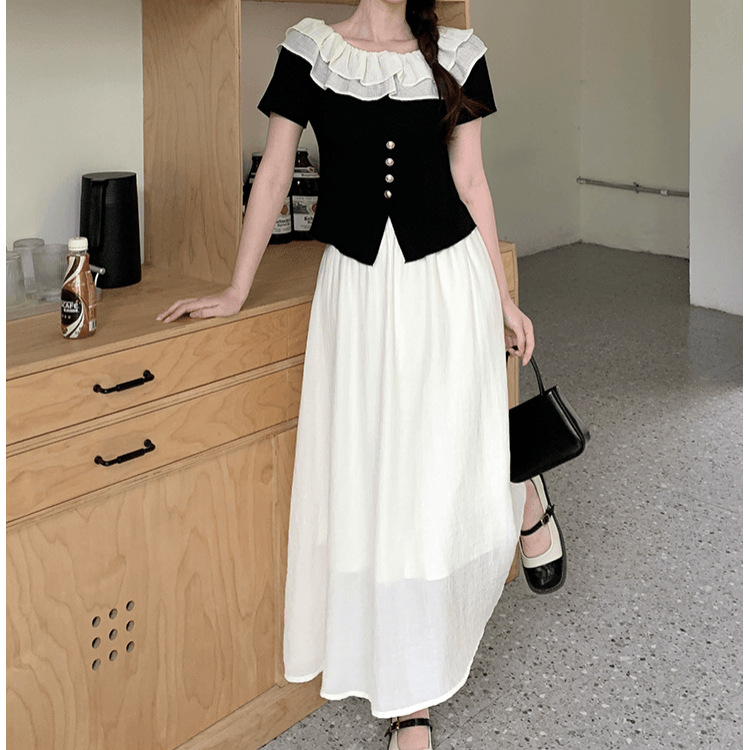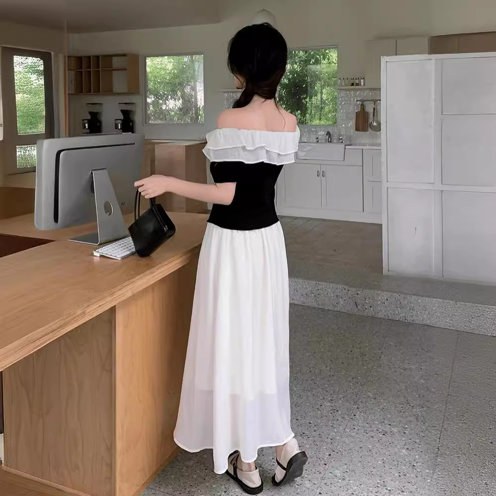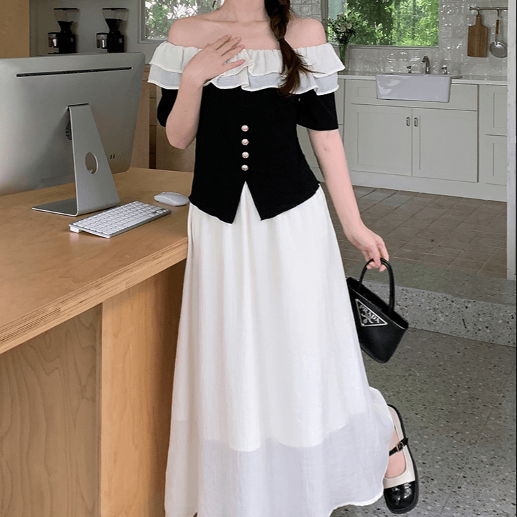 | nameOriginal | French Style Elegant suit Women's 2024 Summer New Style Chanel Style Off-shoulder T-shirt Fashionable High Waist Slimming Long Dress Two Pieces |