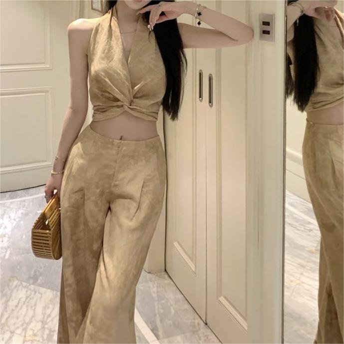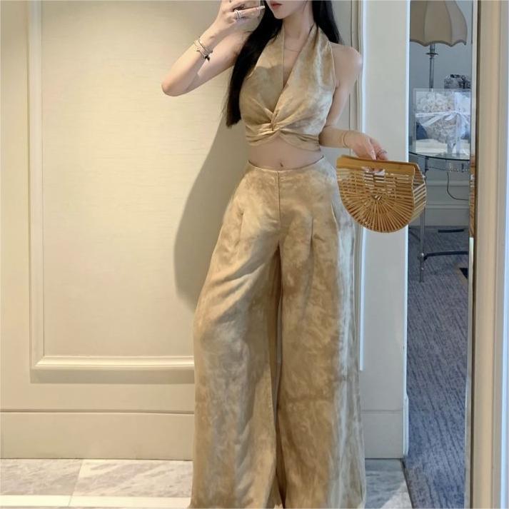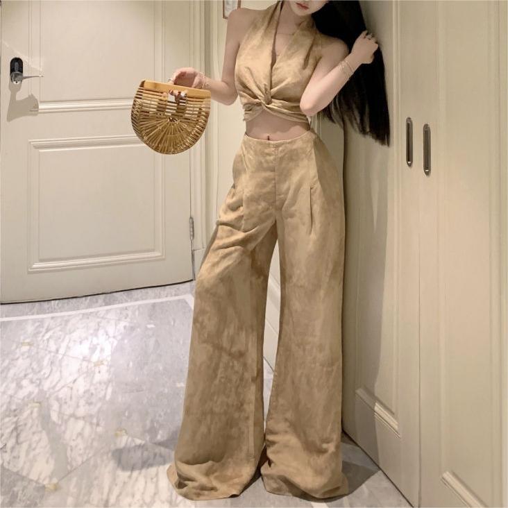 | nameOriginal | French Style Elegant suit Women's Summer New Spice Girl Fried Street Western Style Camisole Casual High Waist Wide Leg Trousers |