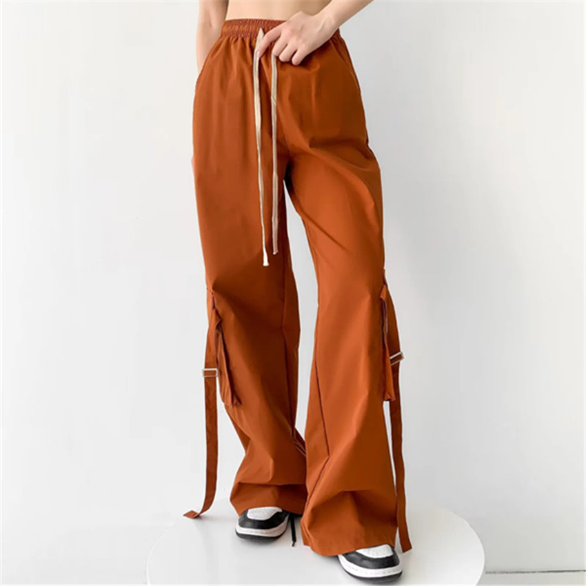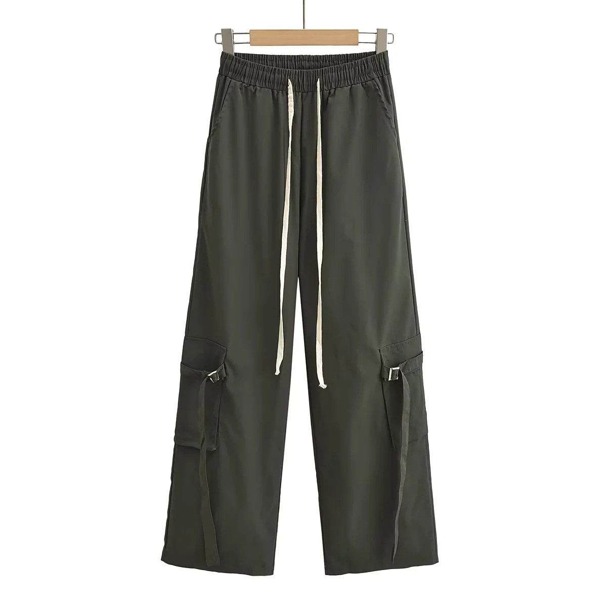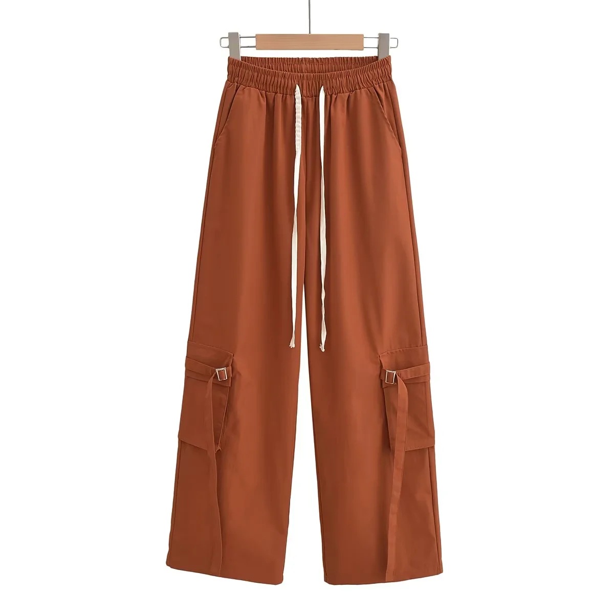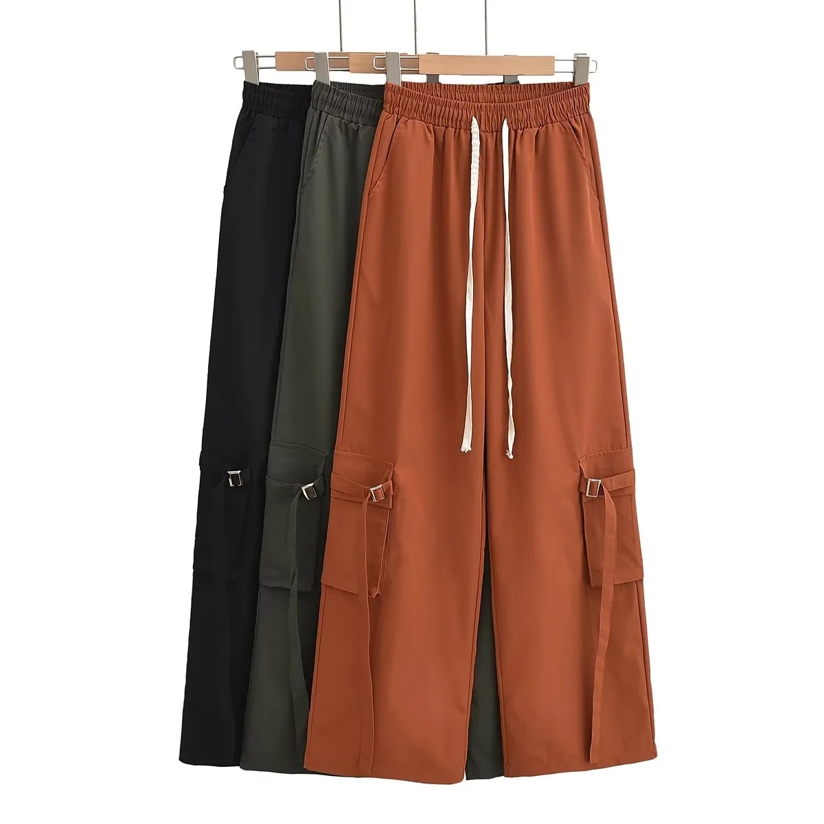 | nameOriginal | French style European and American style retro contrast color drawstring elastic waist personalized pocket overalls loose all-match wide leg trousers |