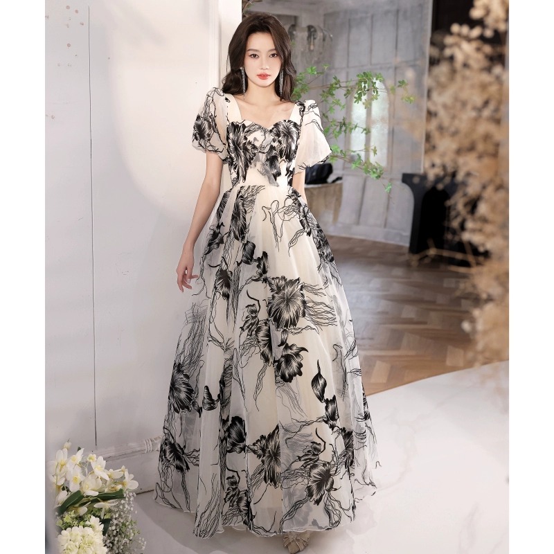 | nameOriginal | French Style Evening Dress Women's Light Luxury High-end Niche Banquet Super Fairy Light Veil Chinese Style Ink Painting Pattern Vocal Art Test |