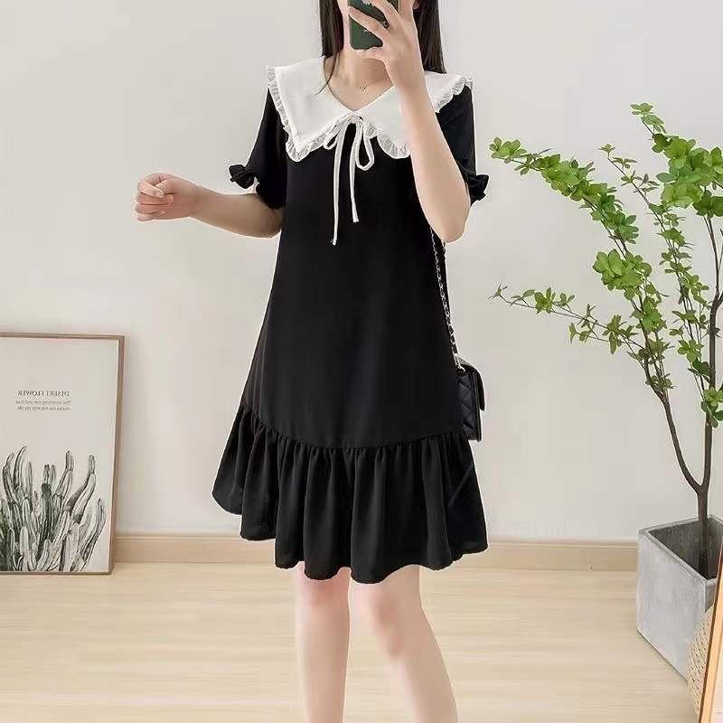 French Style First Love Sweet dress Women’s 2024 Summer College Style Doll Collar Loose Midi Elegant Black Dress