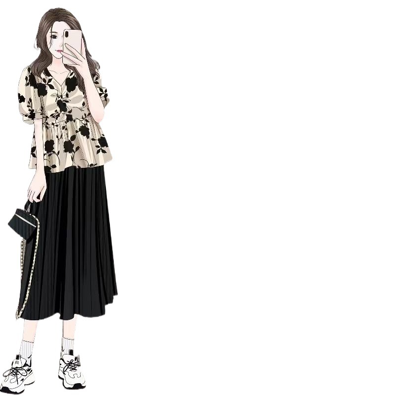 French Style Floral Short-sleeved Shirt Women's Summer New Arrival plus size chubby girl Korean Style Slim Look Belly Covering All-match Elegant V-neck Top