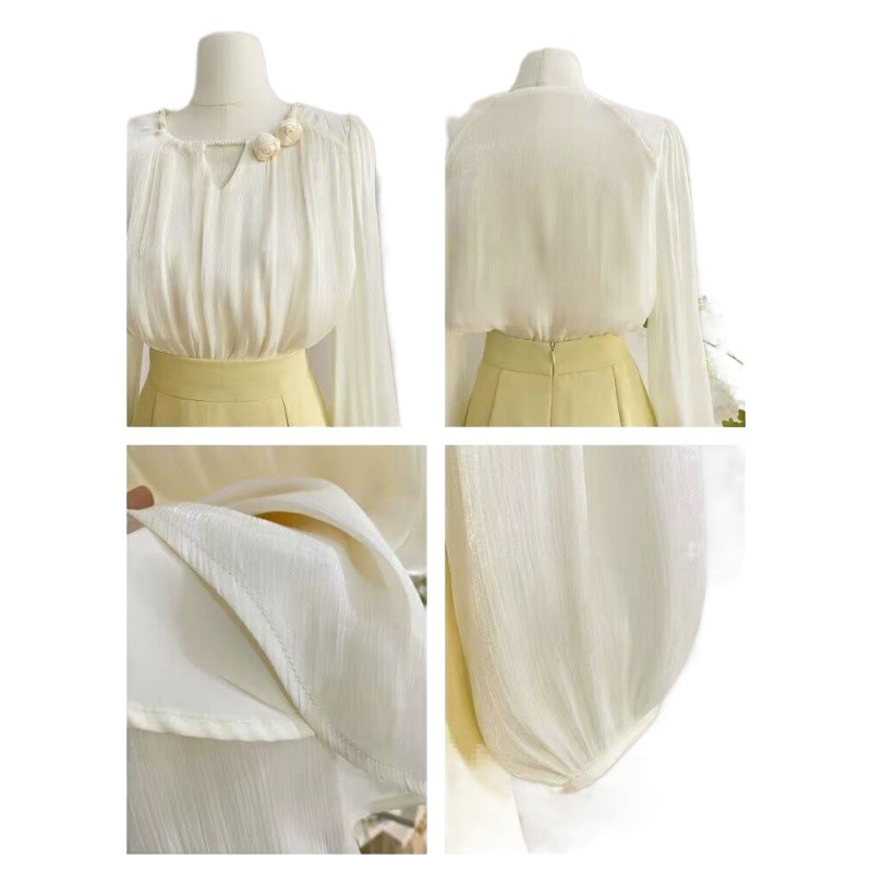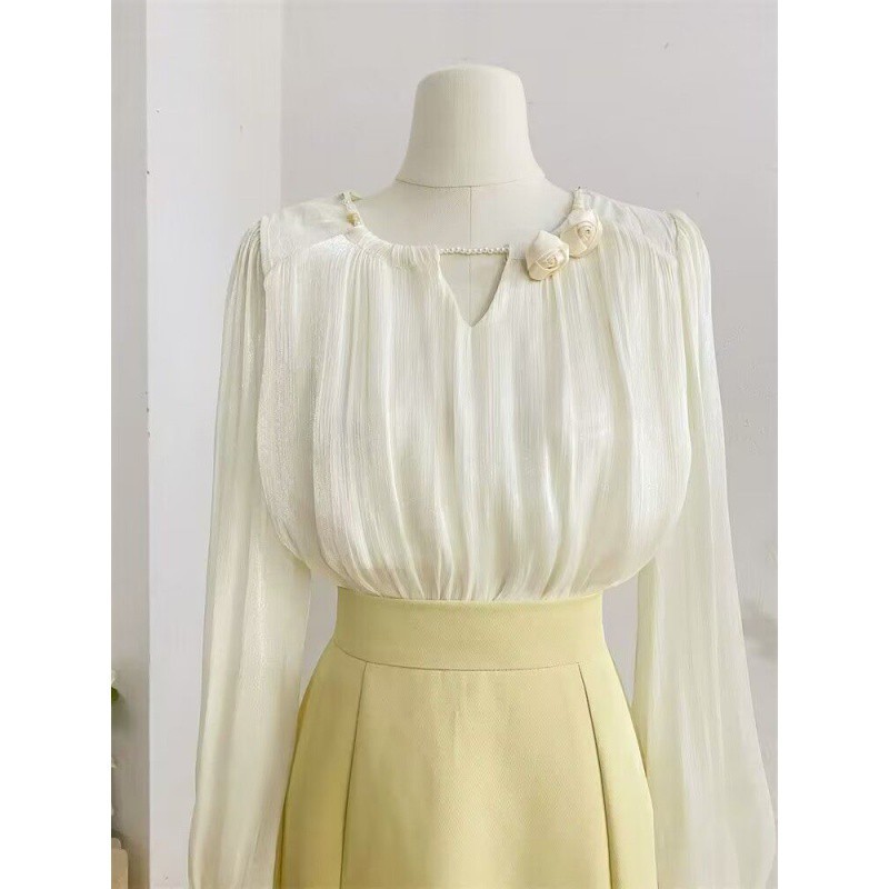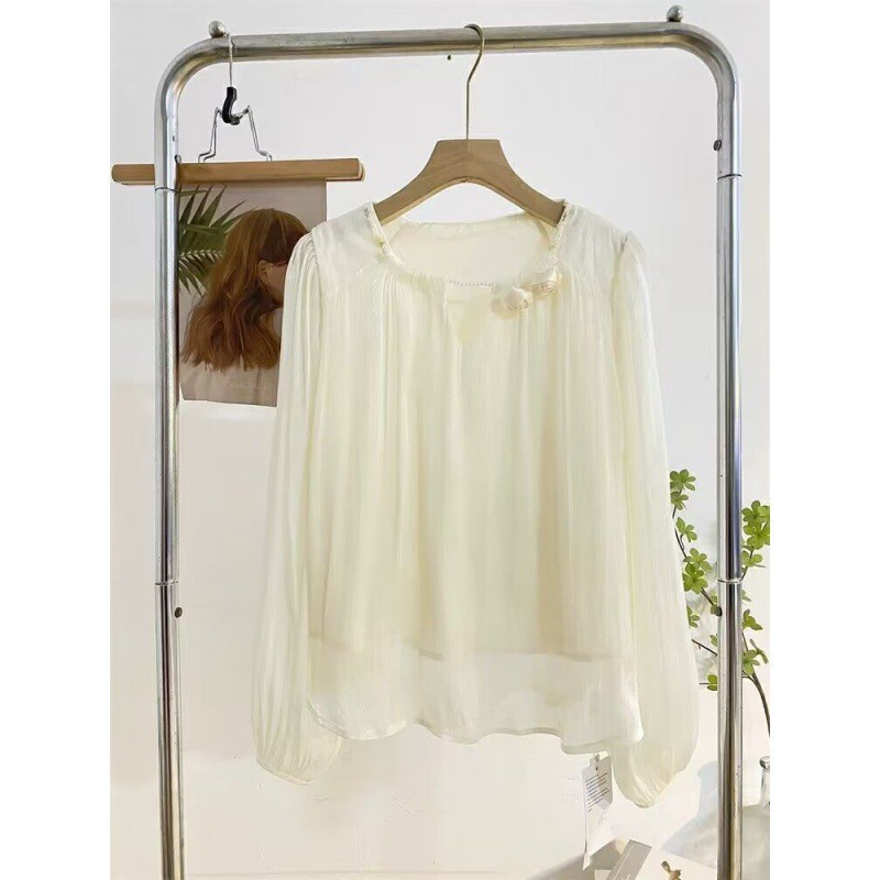 | nameOriginal | French Style Gentle Pearl Round Neck Long Sleeve Shirt Women's Spring Design Sense Three-dimensional Flower Lantern Sleeve Shirt Top Women |