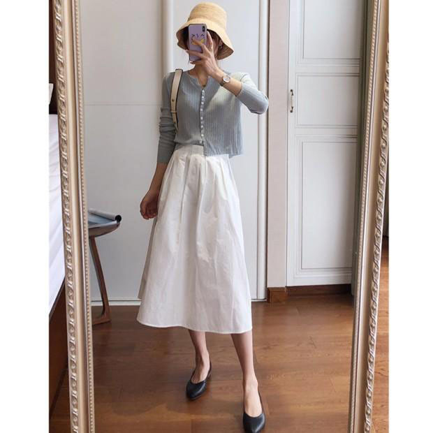 | nameOriginal | French Style High-grade White High-waist A- line Skirt Women's Summer Mid-length Hip Covering Slimming Umbrella Skirt Tea Break Skirt |