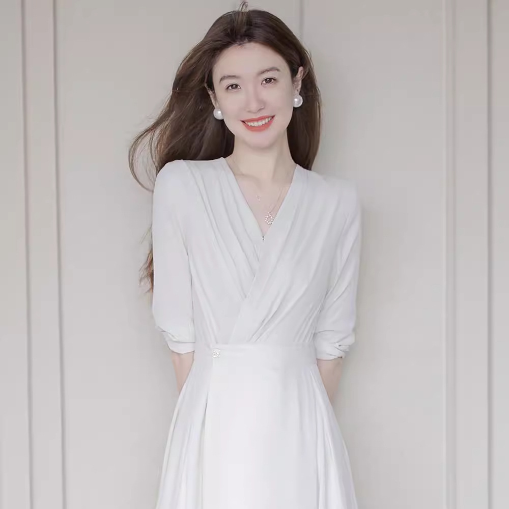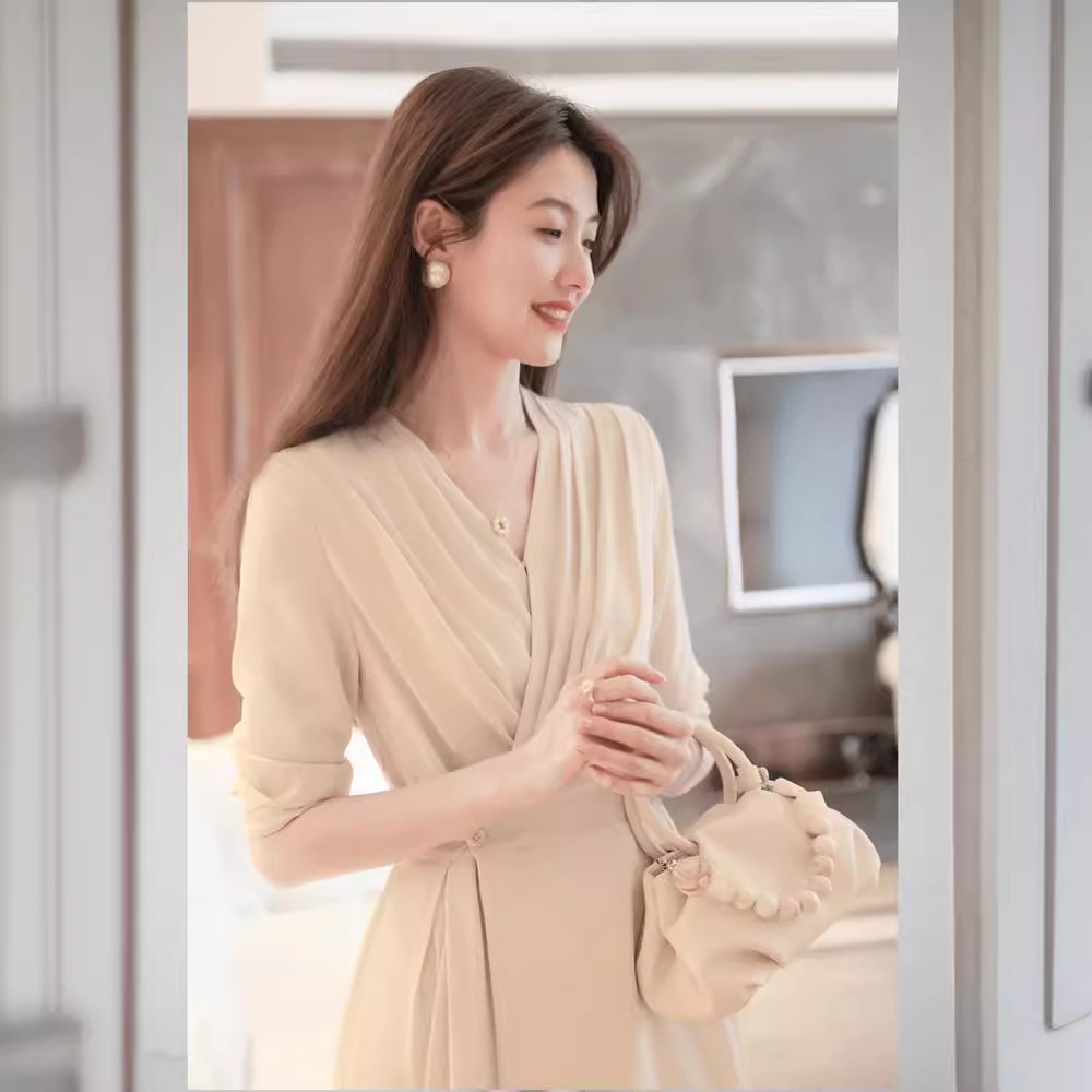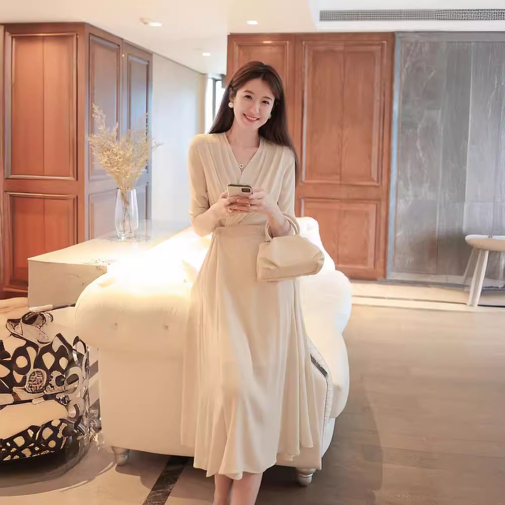 | nameOriginal | French Style High-Level Socialite Style Collar Solid Color Dress 2024 Spring New Elegant Temperament Tight Waist Dress Autumn |