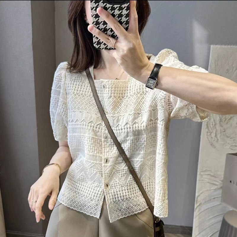 | nameOriginal | French Style Lace Short Sleeve Shirt Women's Summer Design Sense Niche 2024 New Style Small Square Collar Puff Sleeve Shirt |