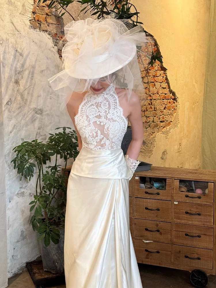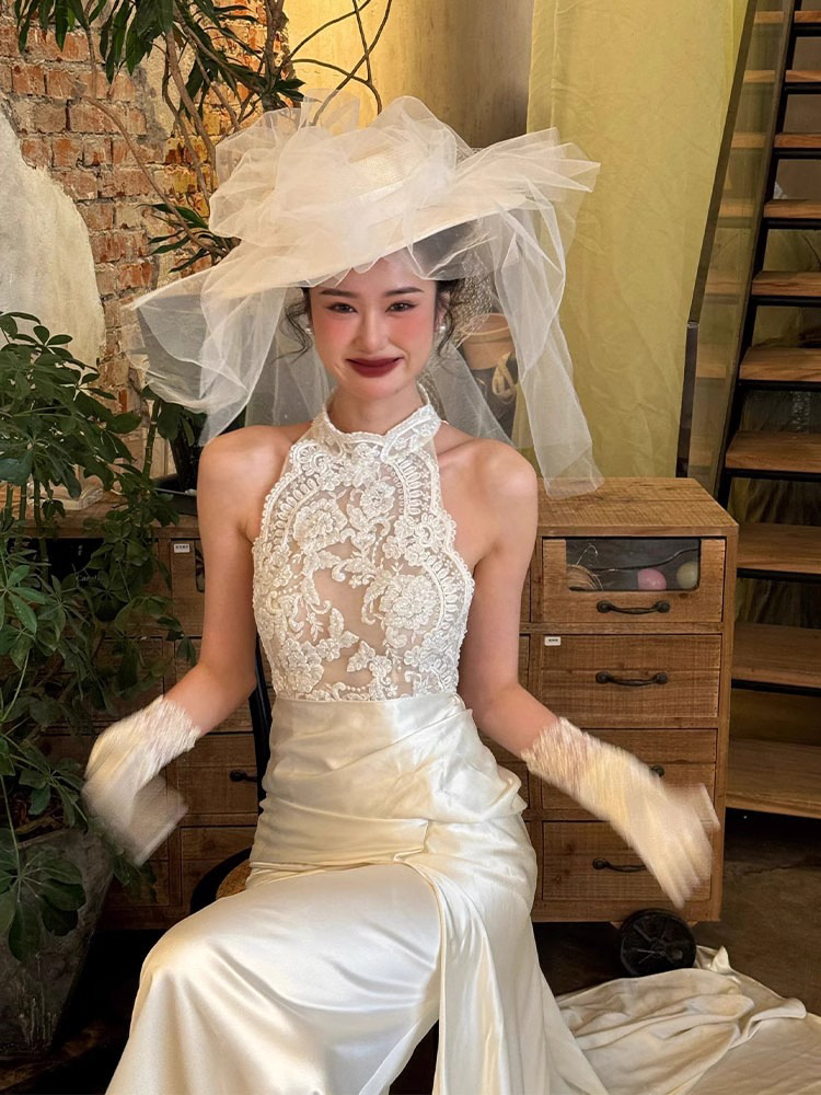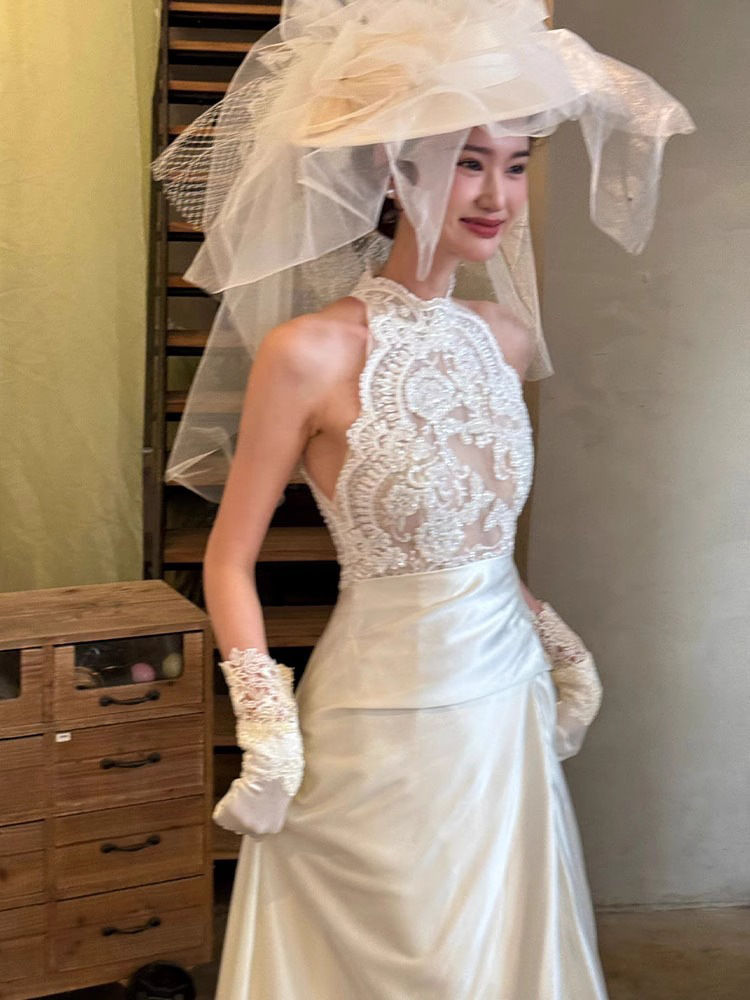 | nameOriginal | French Style Light Wedding Dress Morning Gown Female Bride Wedding Dress Toasting Dress White Lace Tail-off Banquet dress |