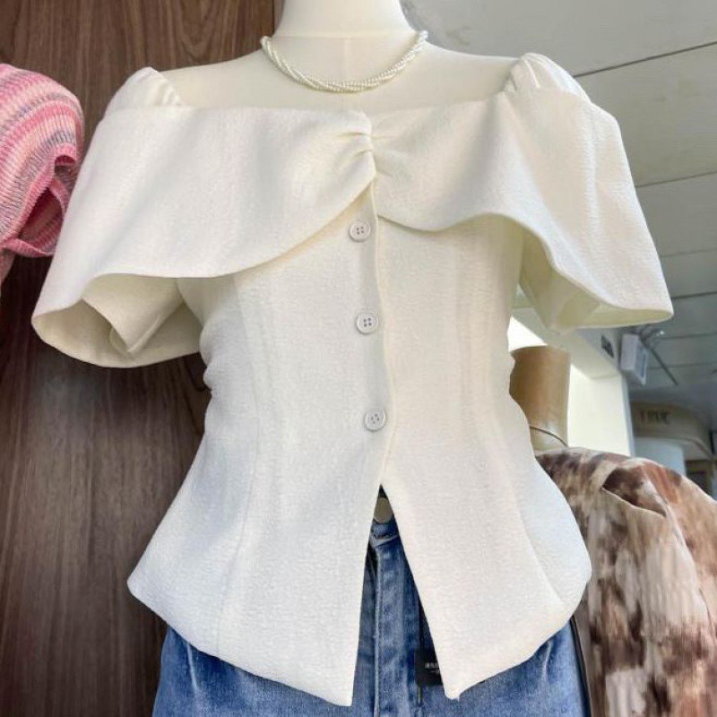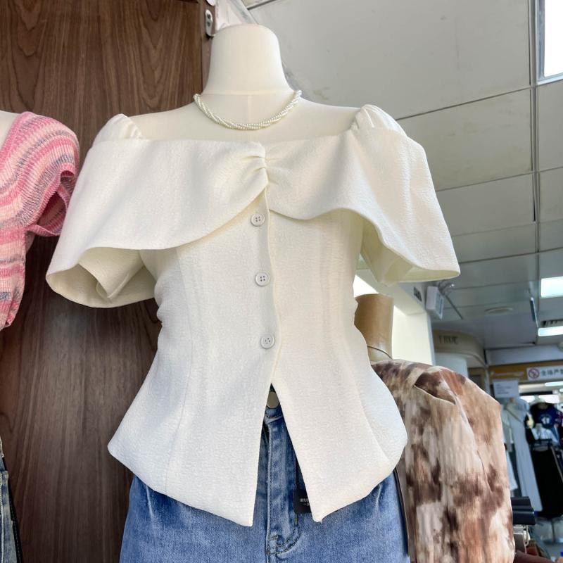 | nameOriginal | French Style Off-shoulder Clavicle Shirt Women's Summer 2024 New Style Design Sense Niche Tight Waist Small Top Trendy |