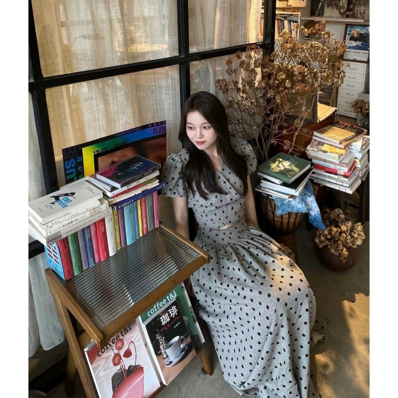 | nameOriginal | French Style Retro Polographic Puff Sleeve Cross Strap Shirt suit Women's Summer Fashion High Waist Mid-length Skirt |