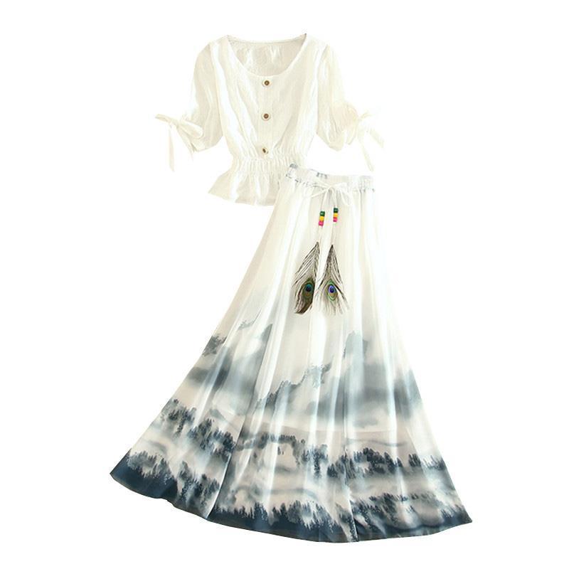 | nameOriginal | French Style Retro Printed Skirt Fashion Set 2024 Summer New Slimming Age-reducing Western Style Two-piece Skirt |