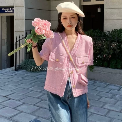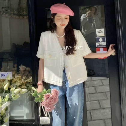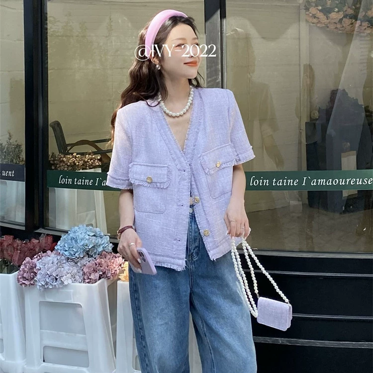 French style short-sleeved tops and jackets for women, summer short, high-end, unique and chic, thin cardigans
