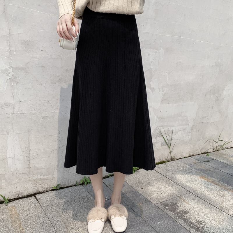 | nameOriginal | French style skirt women's autumn and winter 2023 new high waist design solid color cover long A- line pleated skirt |