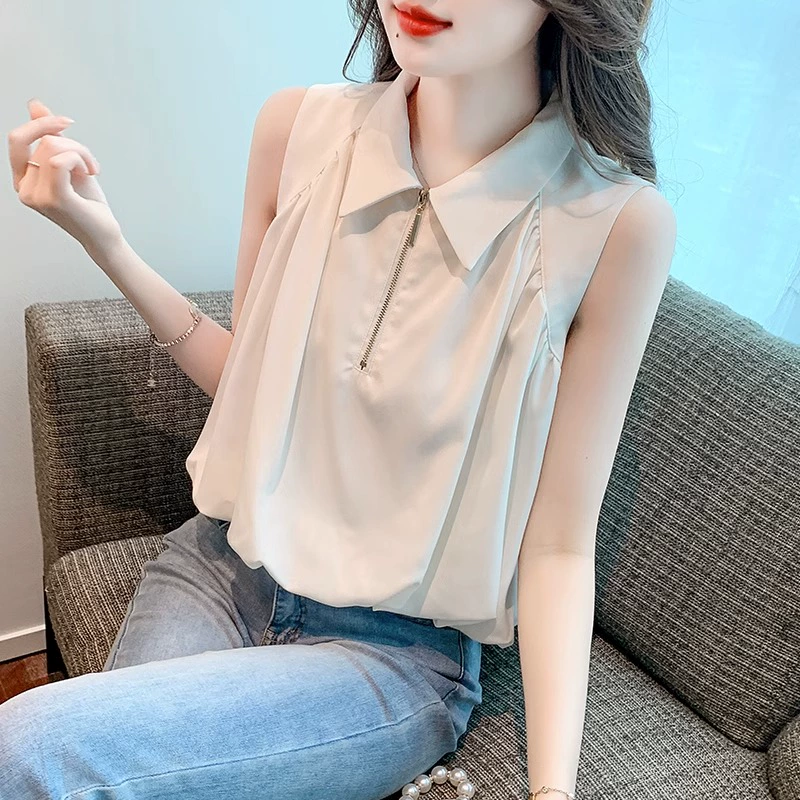 | nameOriginal | French style sleeveless vest chiffon shirt for women summer 2023 new design niche belly-covering slimming top |