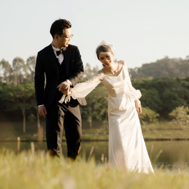 | nameOriginal | French Style Sling Light Wedding Dress Bride Travel Photo Mori Style Super Fairy Simple Banquet Dress Women's Slimming Vintage Outgoing Yarn |