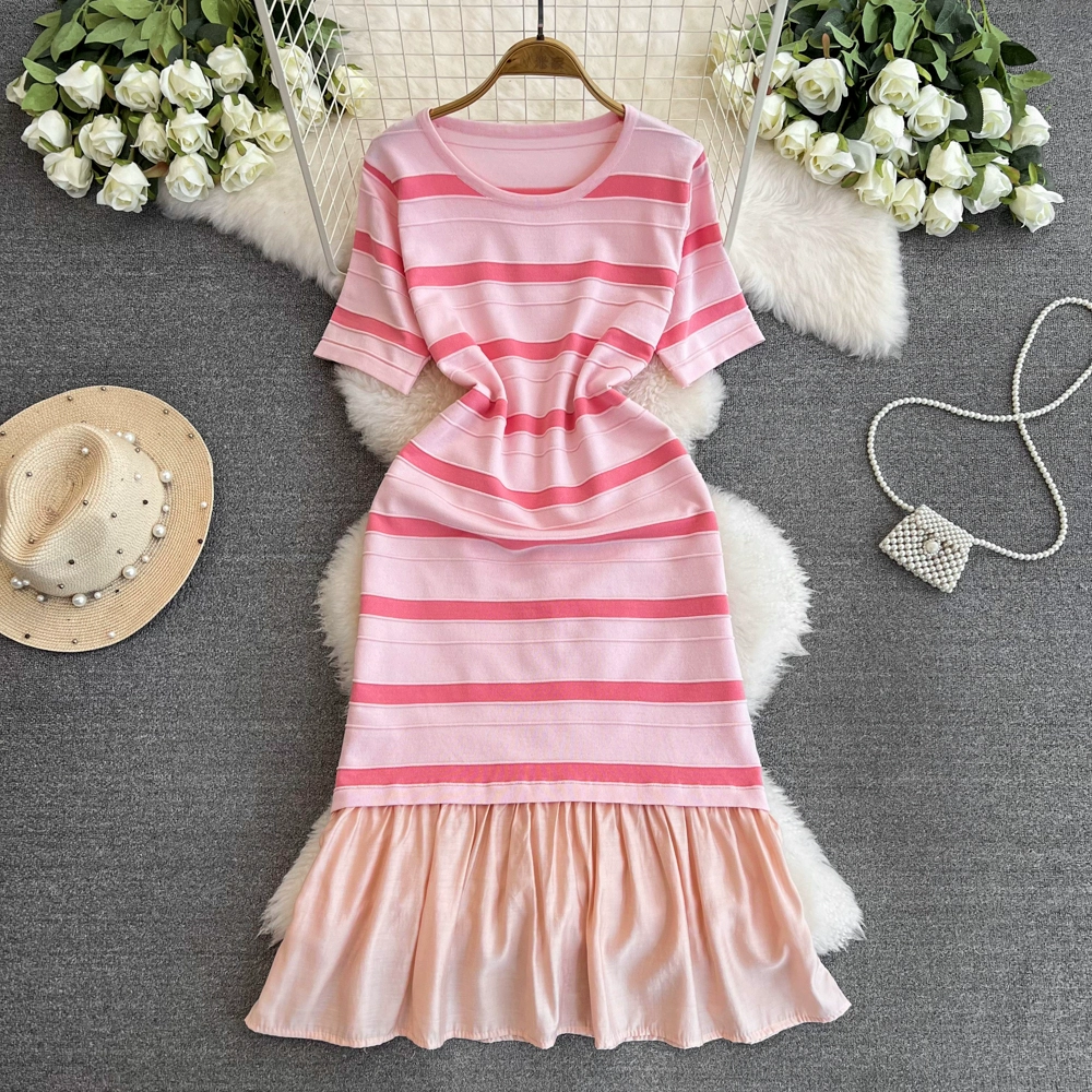 | nameOriginal | French style small style contrasting color striped knitted dress women's summer new style waist slimming ruffle skirt |