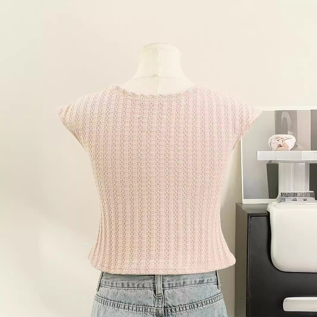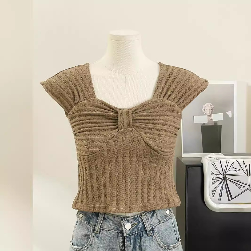 French Style Square Collar Bow Camisole Vest Women’s New Pure Spice Girl Slim-fit Short Strapless Top