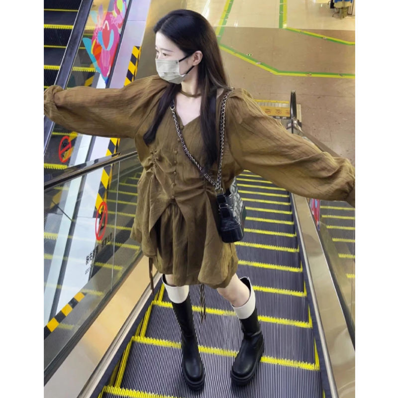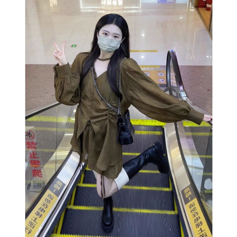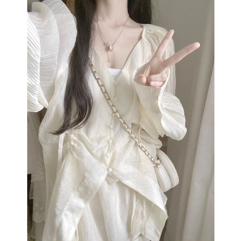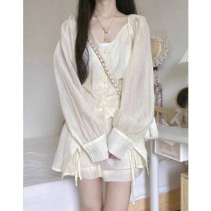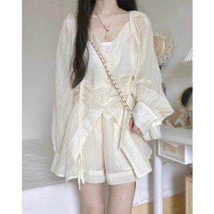 | nameOriginal | French Style Square Collar Bubble Sleeve Sunscreen Shirt High Waist Casual Shorts Two-Piece Set Women's Design Sense Niche Street suit |