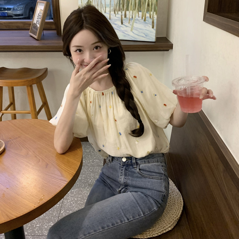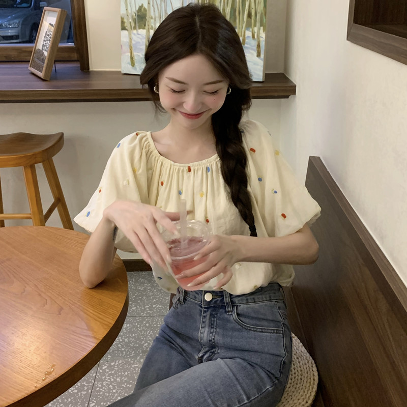 | nameOriginal | French Style Sweet Embroidered Bubble Short-sleeved Shirt Women's Summer Design Sense Niche Chic Loose Short Top |