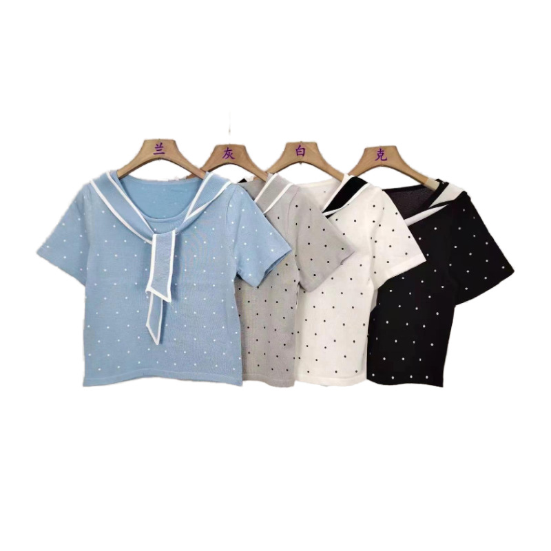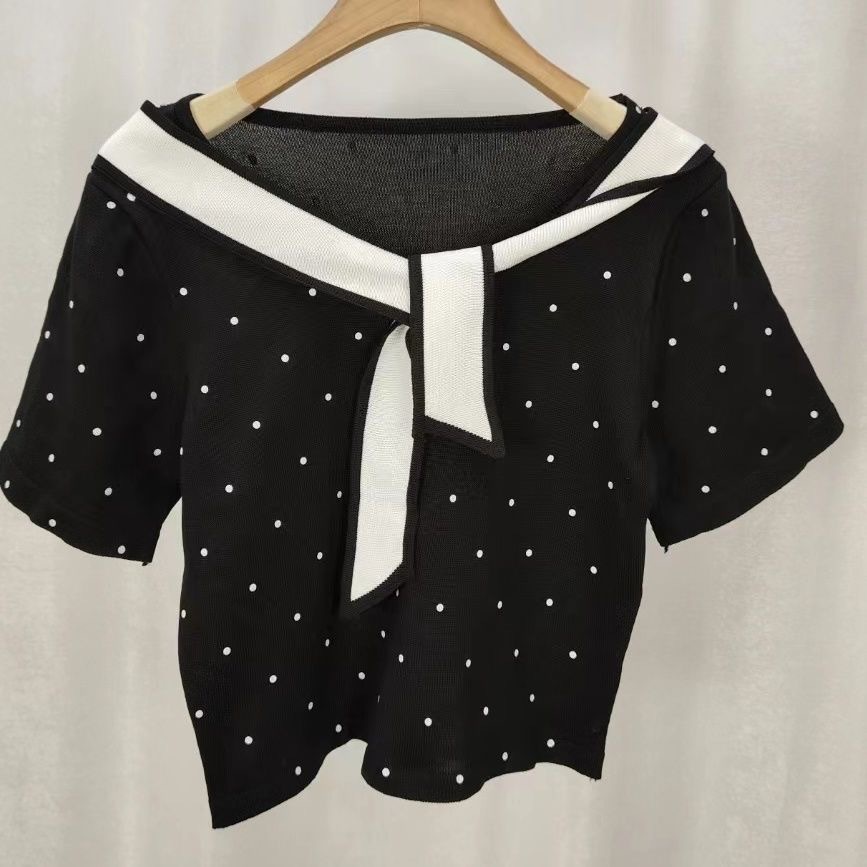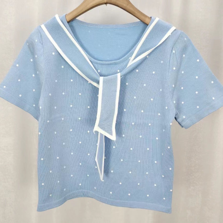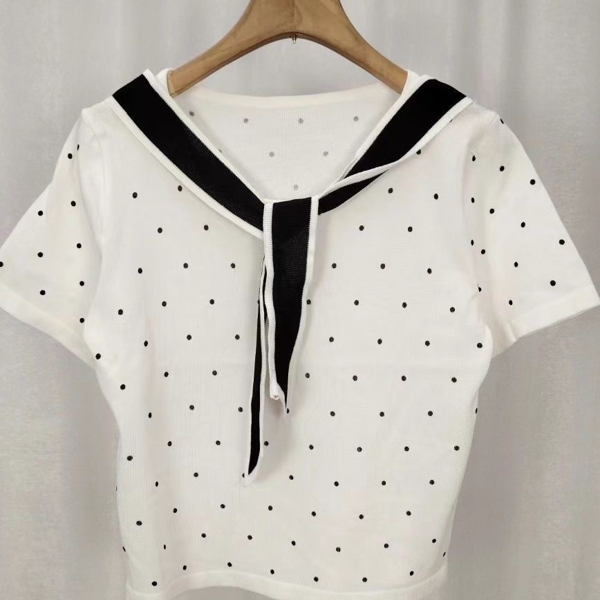 | nameOriginal | French Style Sweet Polo Dot Navy Collar Knitted Short-sleeved T-shirt Women's Summer Niche Fashionable Age-reducing All-match Chic Top |