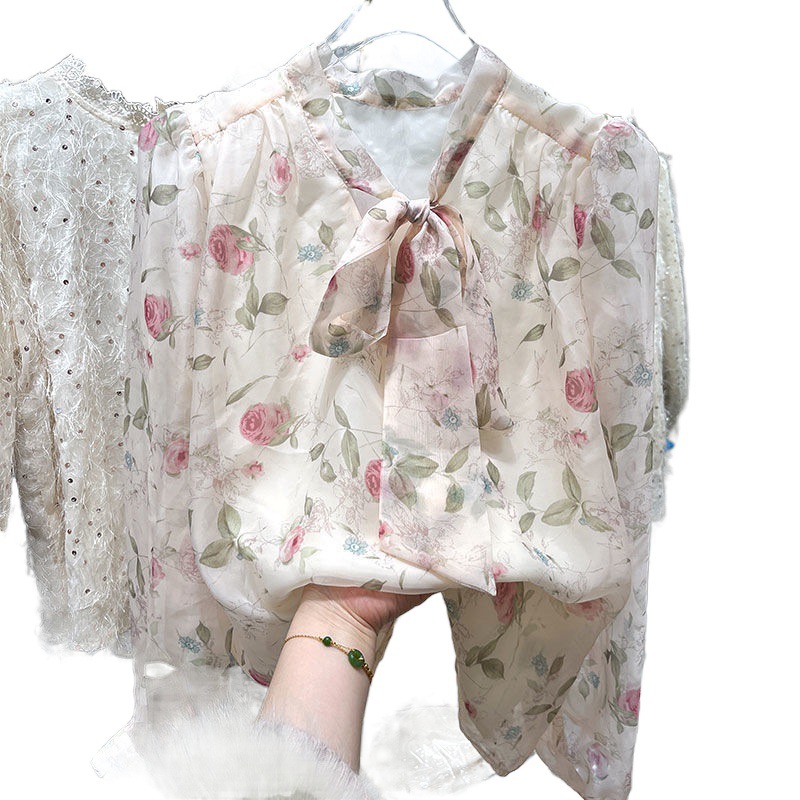 | nameOriginal | French style thin bow this year popular chiffon shirt for women 2024 Autumn New style puff sleeve top western style |