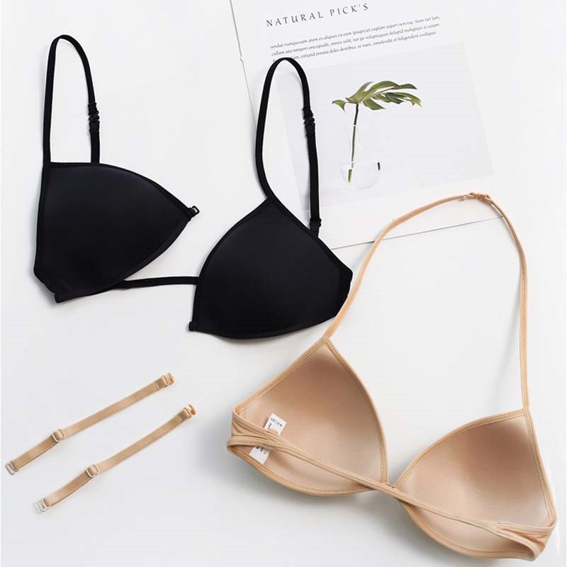 | nameOriginal | French Style Underwear Women's No Steel Ring Sexy Front Buckle Beautiful Back Thin Strap Neck Women's Summer Non-marking Thin Triangle Cup Bra |