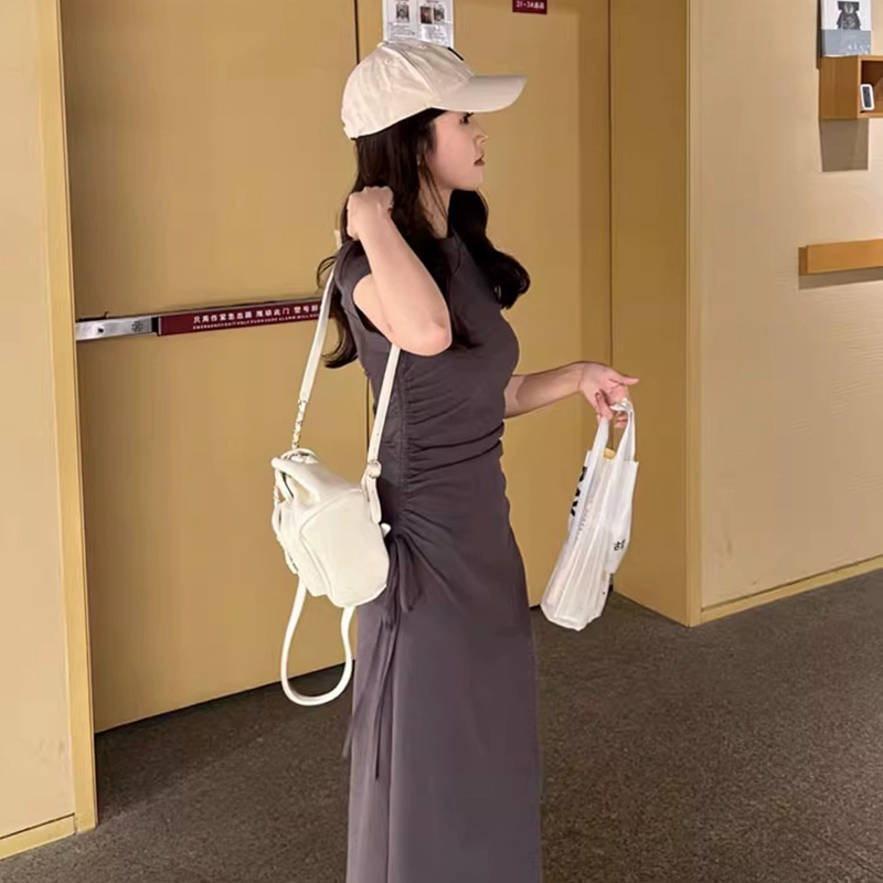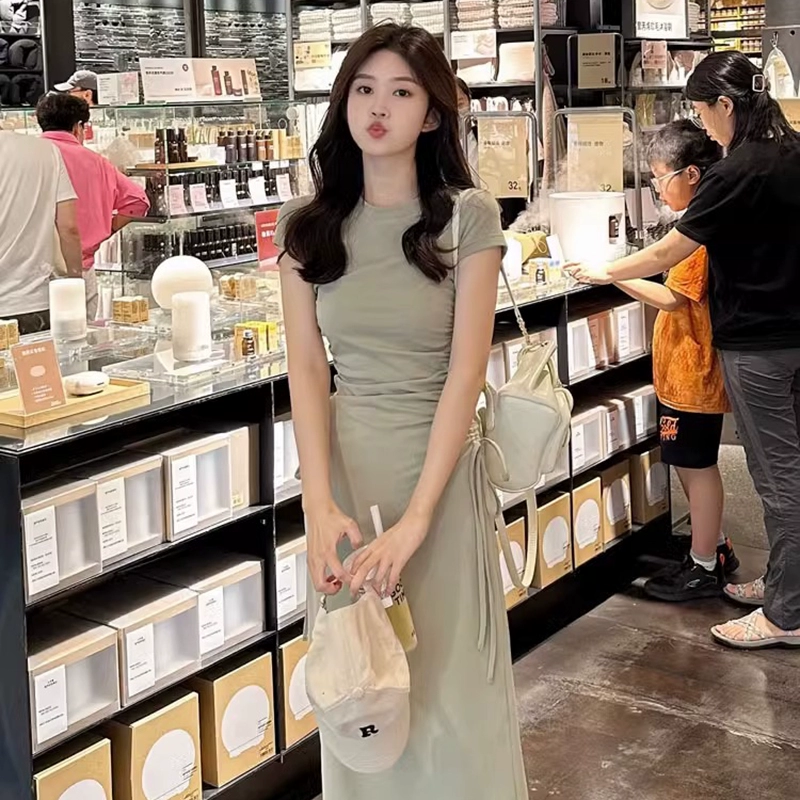 | nameOriginal | French style waist-cinching short-sleeved dress for women 2023 summer new slim fit drawstring long T-shirt skirt |