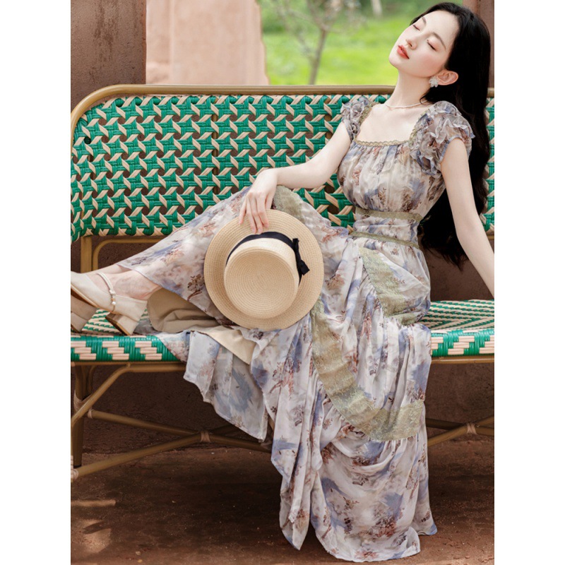 | nameOriginal | French Style White dress Women's Summer Floral Bubble Sleeve New Chinese Style Long Dress |