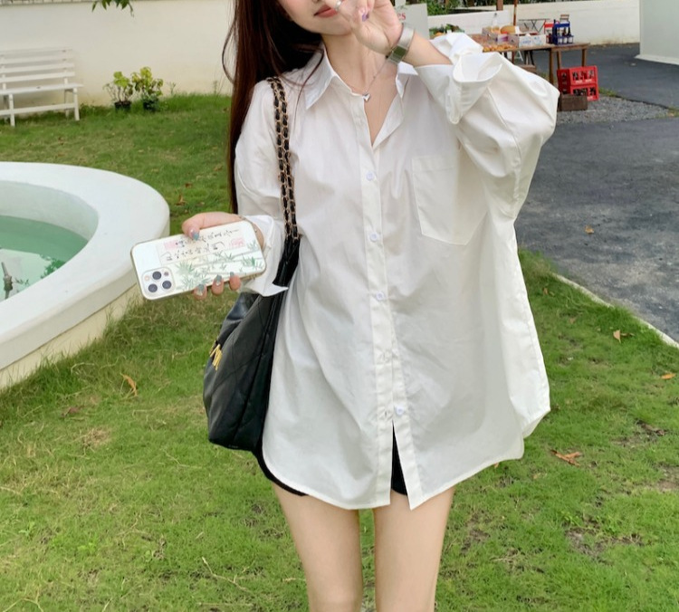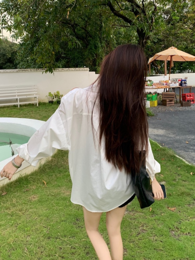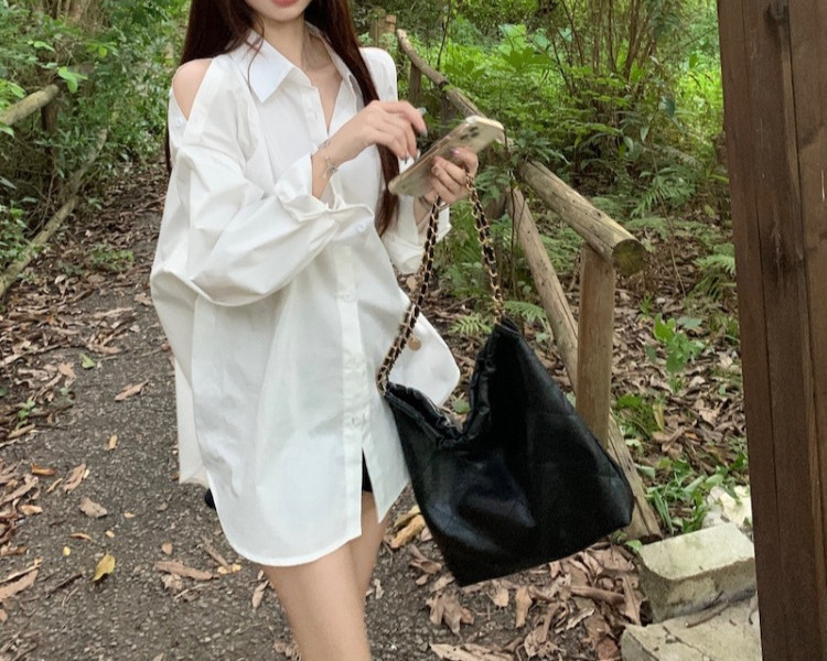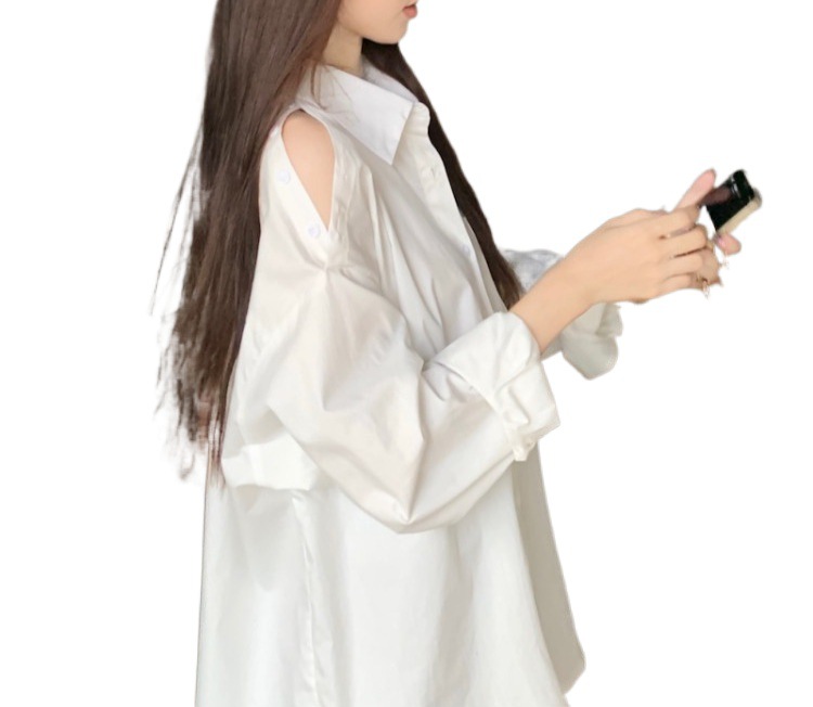| nameOriginal | French style white off-the-shoulder shoulder long sleeve shirt coat women's autumn mid-length loose shirt cardigan outer Polo top |