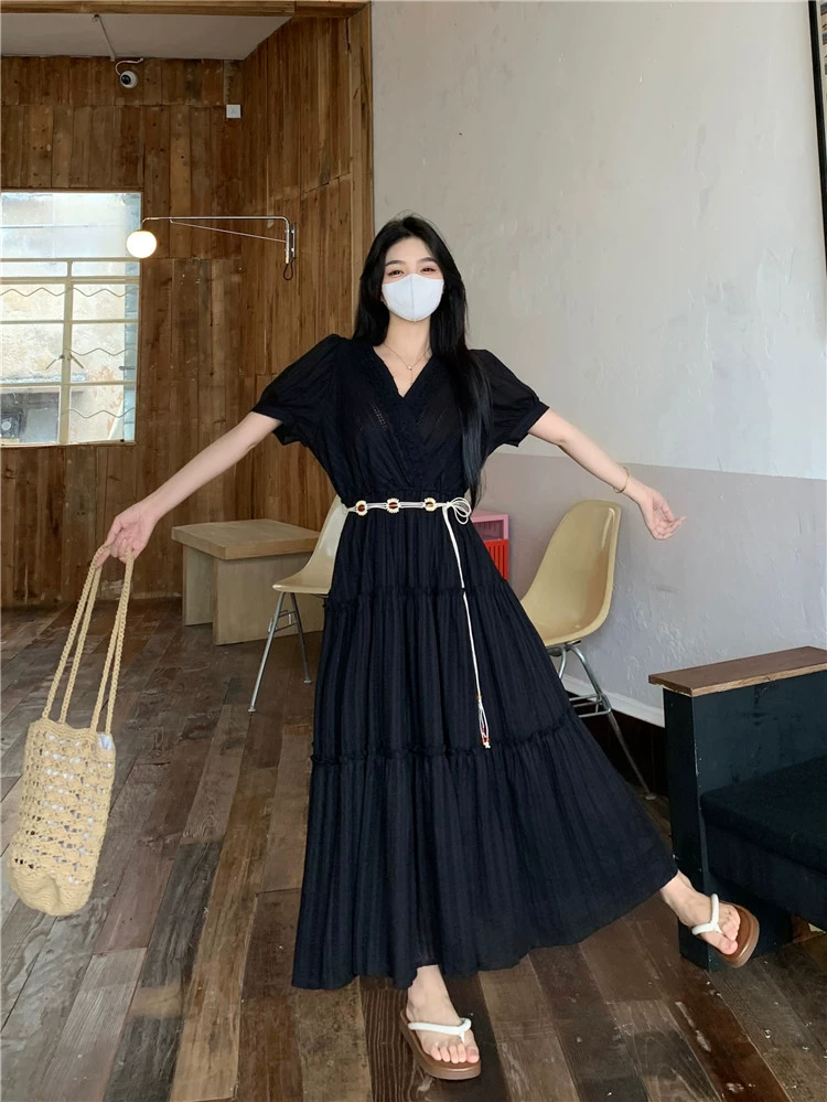 | nameOriginal | French style women's summer pleated short-sleeved dress for fat mm |
