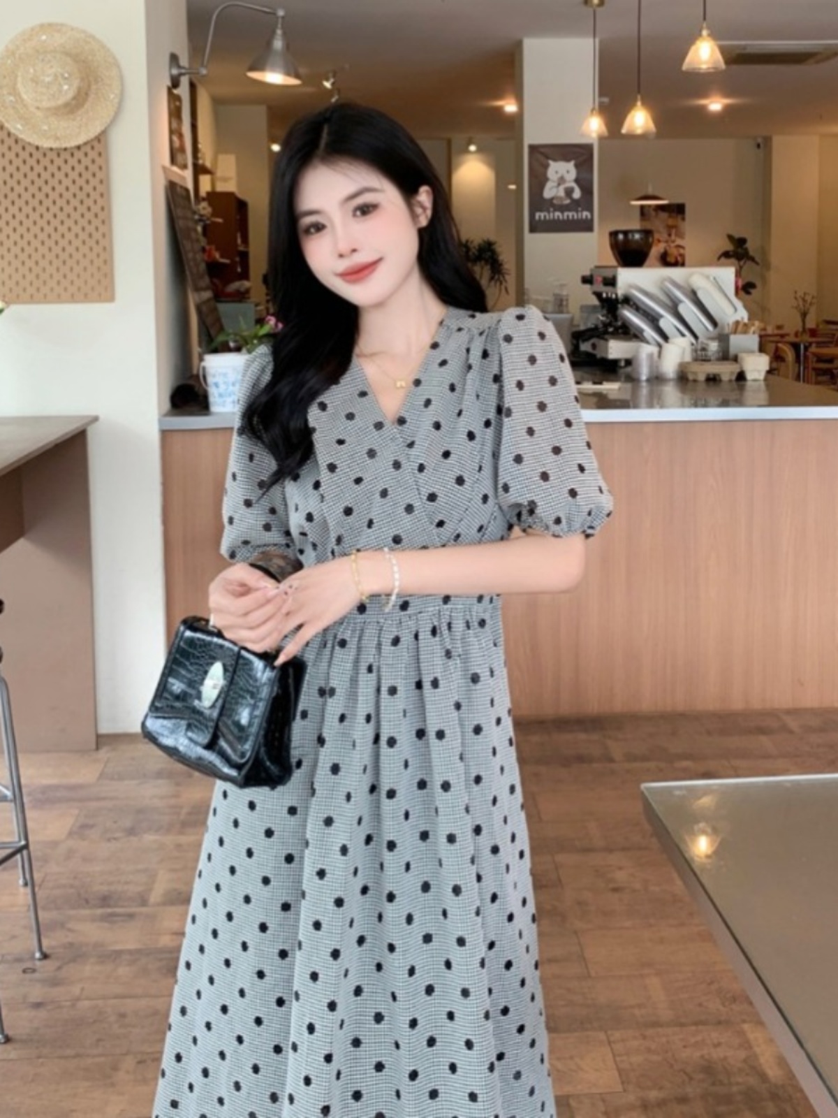 | nameOriginal | French summer polka dot fat MM pleated short-sleeved dress |
