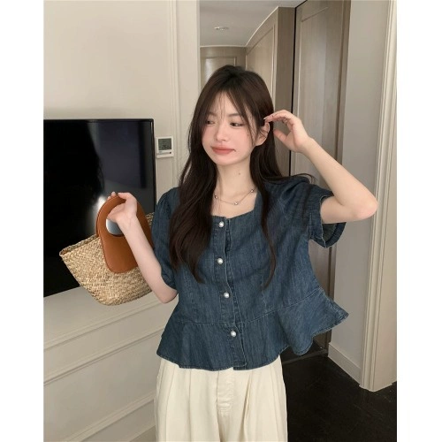 | nameOriginal | French summer waist slimming square collar denim shirt |