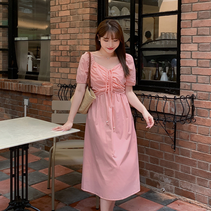| nameOriginal | French sweet pink square collar dress women's chubby girl waist slimming Cable first love gentle style skirt 62569 |