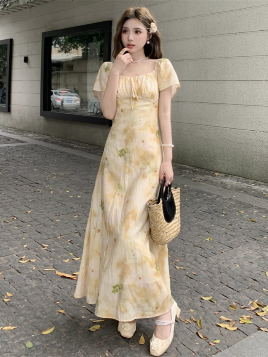 | nameOriginal | French tea break fat girl slimming belly-covering square-neck dress |