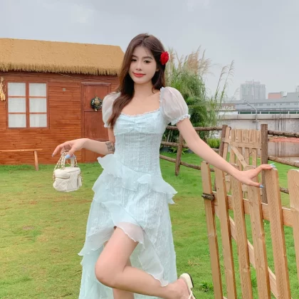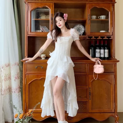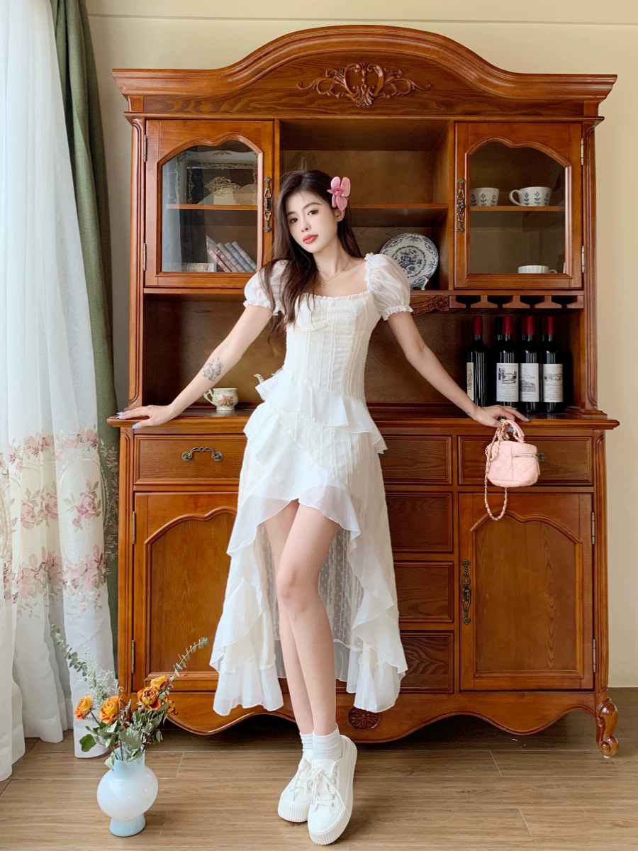 French tea break summer irregular dress for fat girls