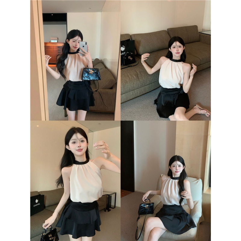 | nameOriginal | French Two-piece Sleeveless Neck Top Women's Summer Black A- line Skirt Skirt Short Skirt Elegant Socialite suit |