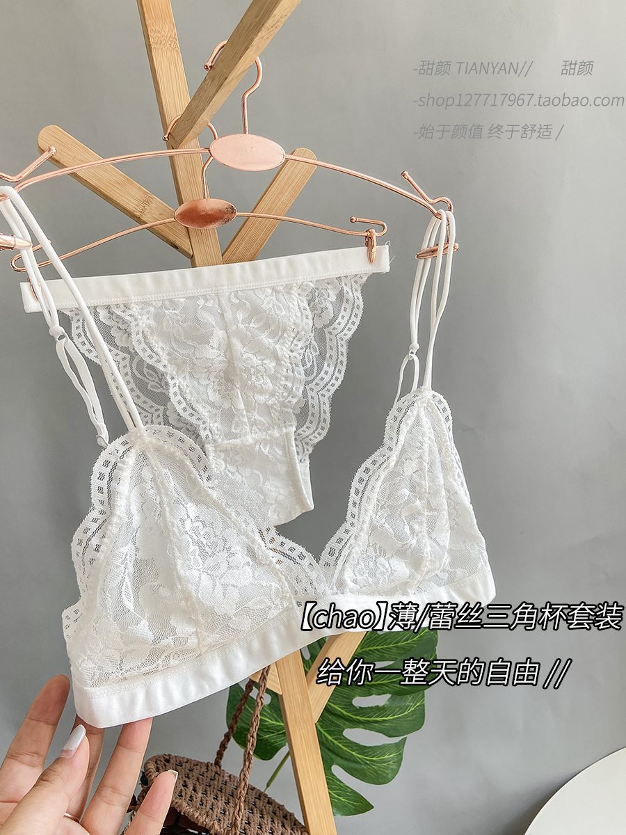French ultra-thin lace underwear set bra underwear a set of non-steel ring non-sponge sexy pure triangle cup